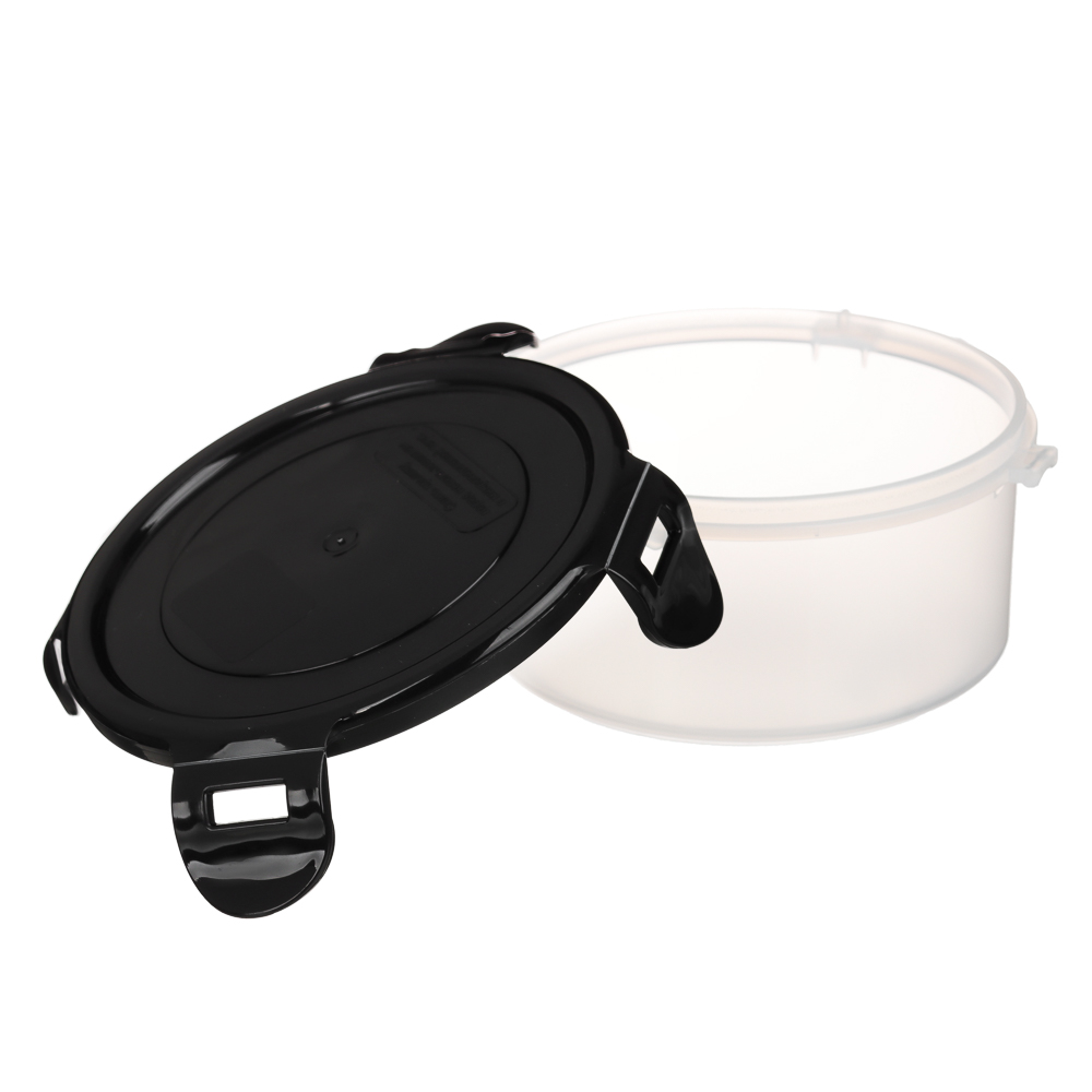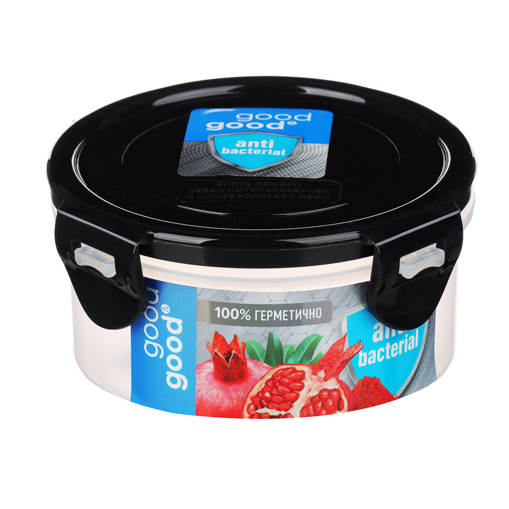 Контейнер герметичный круглый для СВЧ с защелками объемом 0,35 л – емкость для хранения и разогрева еды, которая значительно продлевает хранение готового блюда. Высококачественный пищевой пластик не выделяет вредных компонентов, а антибактериальный компонент замедляет рост и размножение микроорганизмов, в результате продукты хранятся до двух раз дольше. Силиконовый уплотнитель и специальные зажимы препятствуют доступу кислорода внутрь контейнера, за счет чего достигается 100%-ная герметичность. Подходит для СВЧ-печи и морозильной камеры.