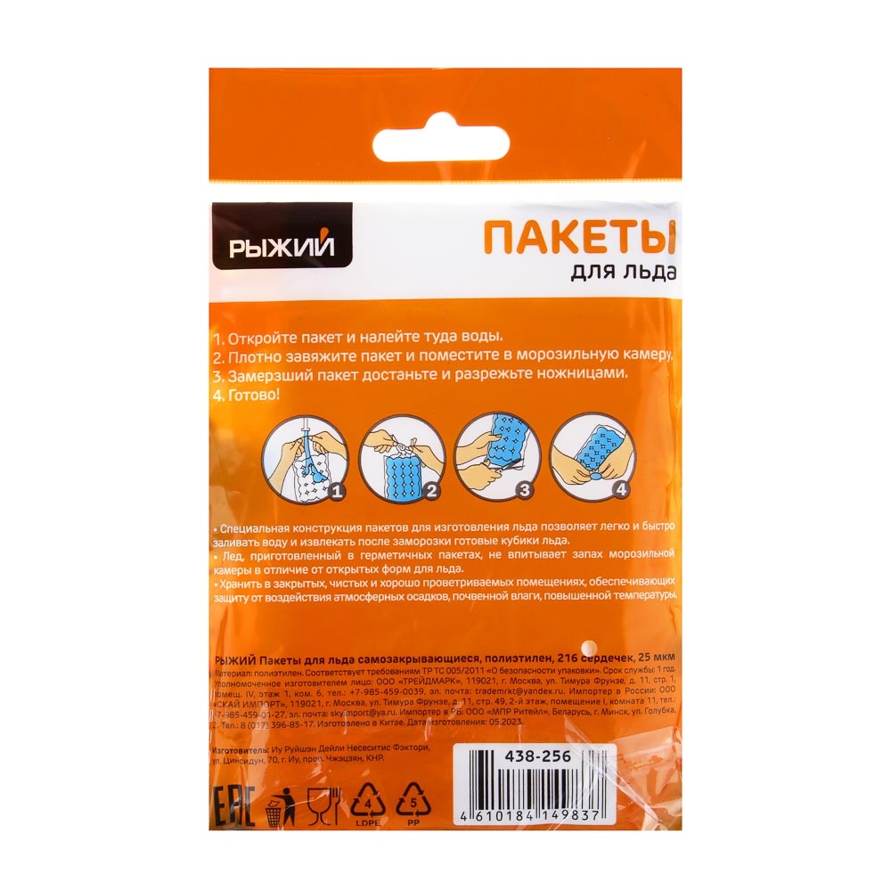 Пакеты для льда самозакрывающиеся позволяют приготовить крупный лед, без острых краев, который долго тает. Качественные перемычки между ячейками обеспечивают правильную форму льда. Пакет из полиэтилена высокого давления очень легко отделяется от льда. Завязки пакета обеспечивают гигиеничное хранение и исключают протекание. Пакеты для приготовления льда удобно хранить в переполненной морозильной камере. Замороженный лед получается в форме сердечка.