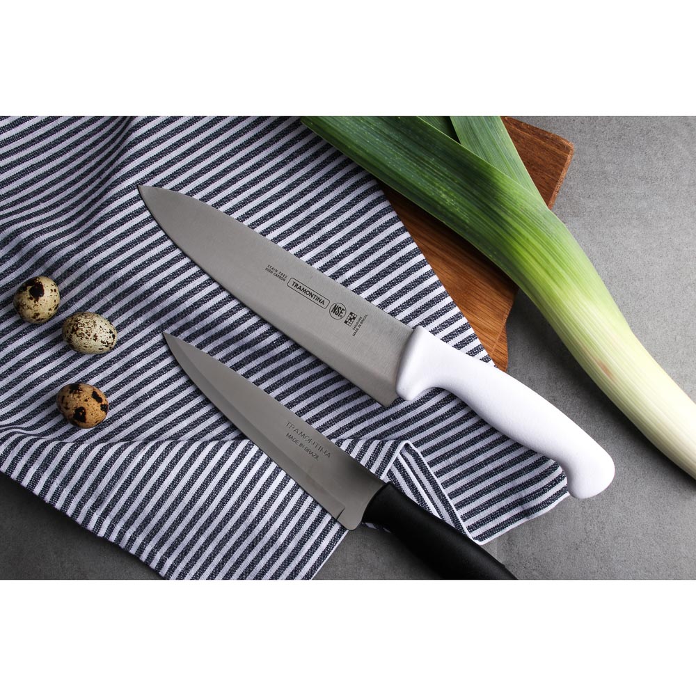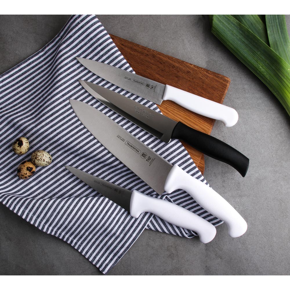 Лезвие ножа Tramontina Professional Master создано из долговечной углеродистой стали. Изготовление лезвия происходит при помощи уникальной ковки, это позволяет ножу оставаться острым значительно дольше. Полипропиленовая рукоять ножей серии Professional Master удобно лежит в руке и не скользит. А благодаря антибактериальной защите Microban ® поверхность не подвержена образованию неприятного запаха и пятен, вызванных бактериями, плесневым грибком и налетом.