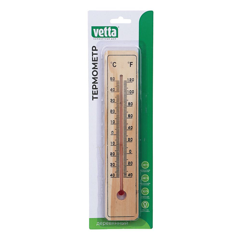 Термометр деревянный Vetta Классик малый - это высокоточный прибор, измеряющий температуру воздуха с точностью до нескольких градусов, можно определять температур по шкалами Цельсия и Фаренгейта. Изделие не содержит ртути. Классический дизайн и простота крепления позволяют разместить термометр в любом удобном месте. Оснащен удобной металлической петелькой для подвешивания.