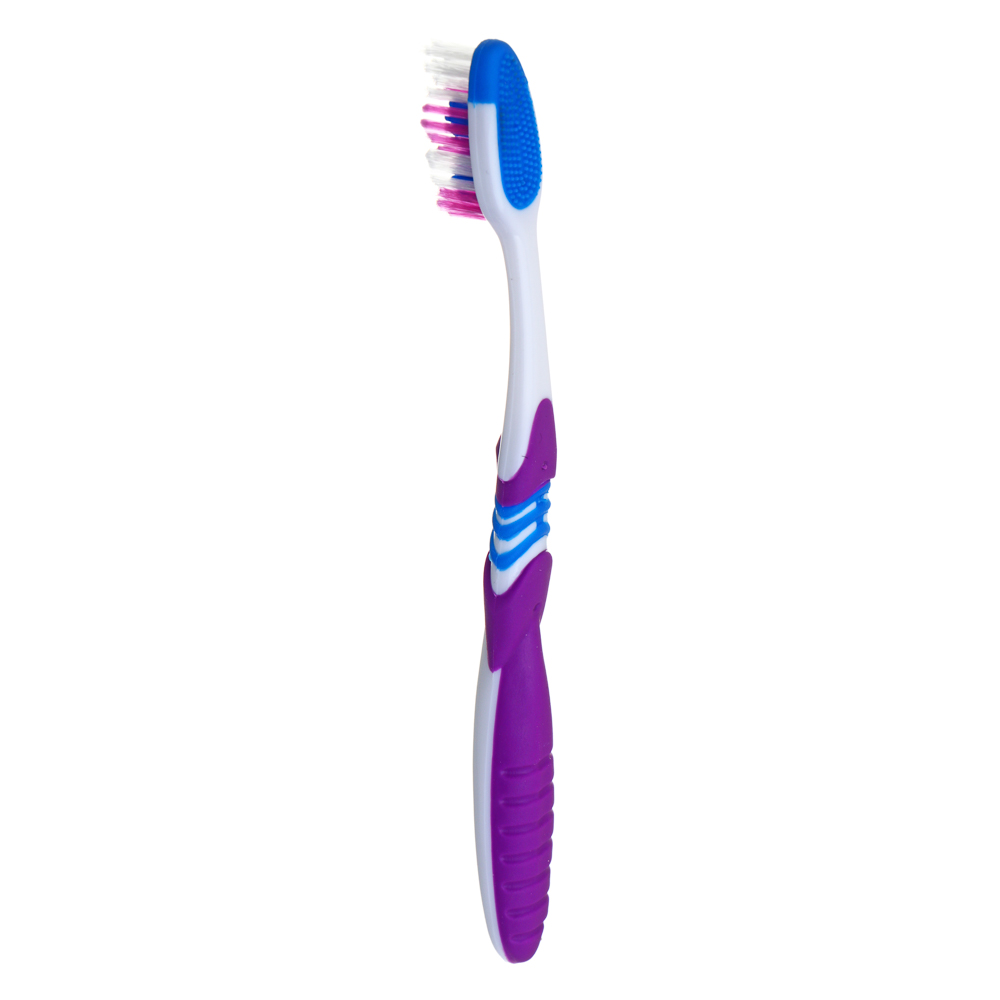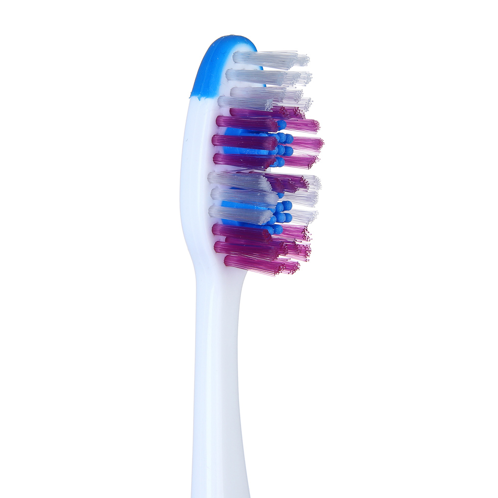 Тонкие и мягкие заостренные верхние щетинки глубоко проникают в труднодоступные для обычных зубных щеток промежутки между зубами.