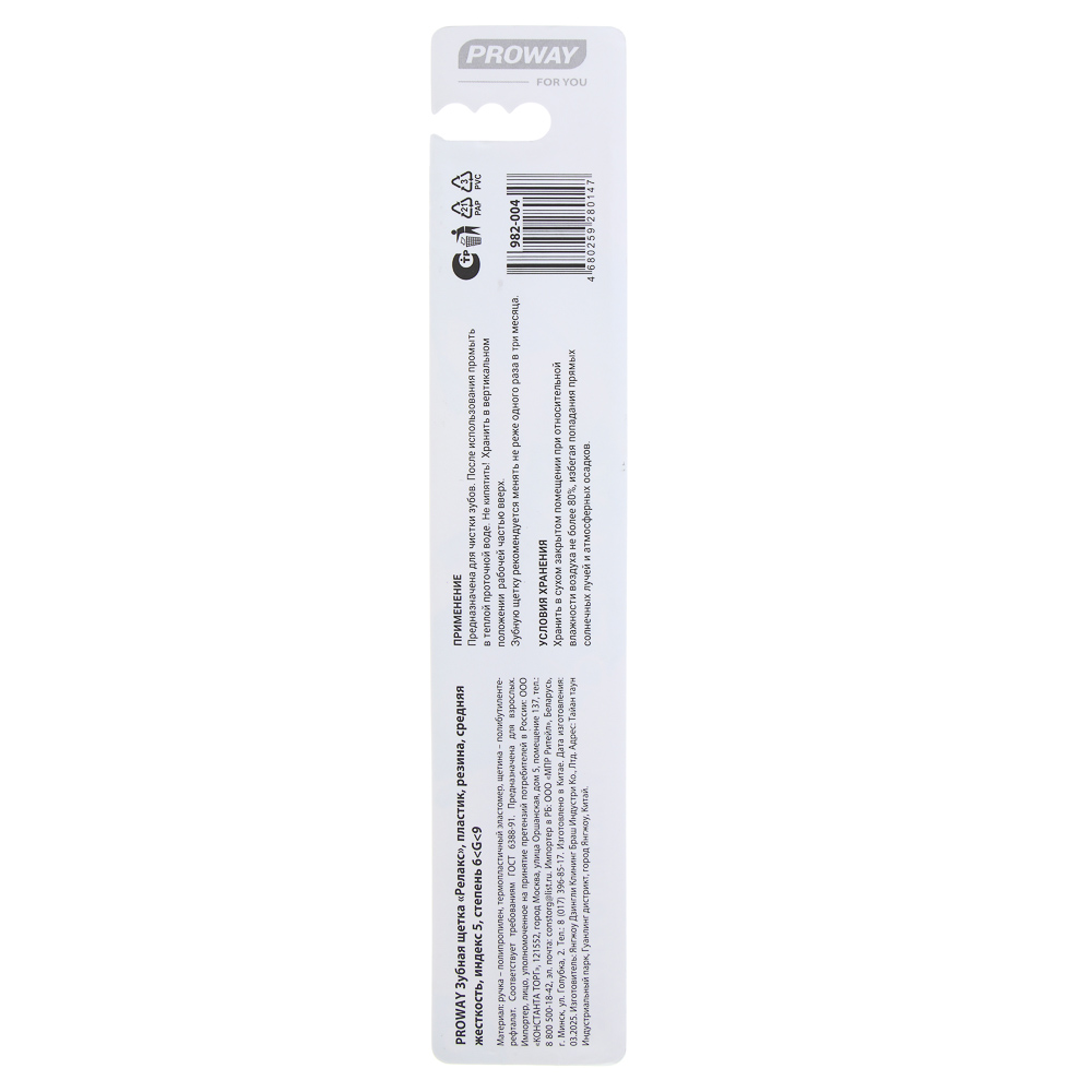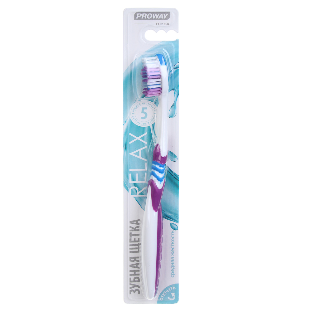 PROWAY Зубная щетка Релакс, пластик, резина, средняя жесткость, индекс 5, степень 6