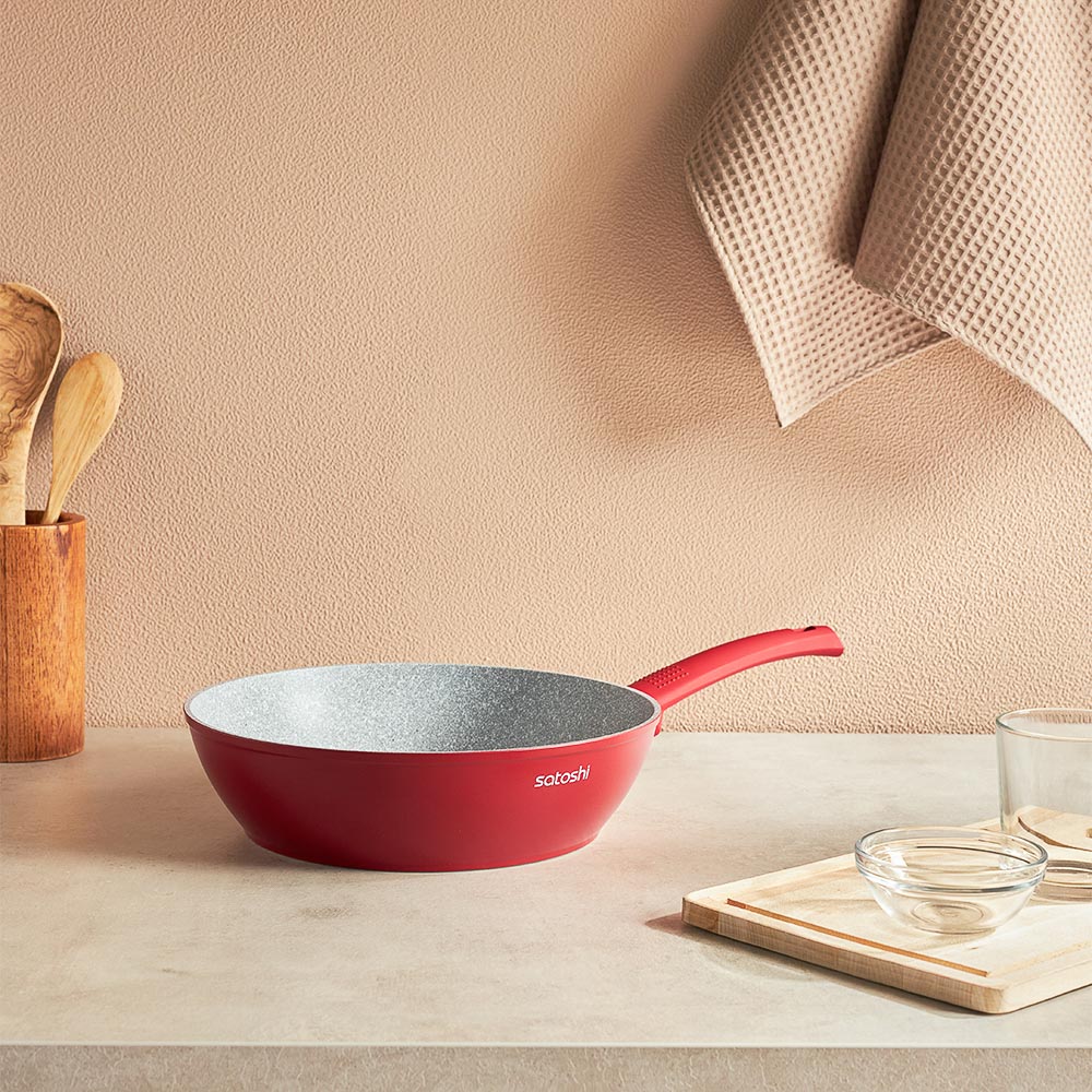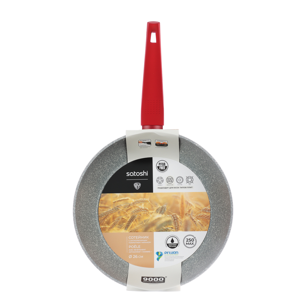 Выбираете качественную и стильную посуду для современной кухни? Обратите внимание на литой сотейник SATOSHI Верден. Сотейник из литого алюминия диаметром 26 см имеет массу преимуществ:Высокие стенки, которые добавляют объем и позволяют готовить блюда для большой семьи и гостей.Качественное антипригарное покрытие под мрамор – теперь еду можно готовить без масла и лишнего жира.Эргономичная ручка с силиконовым напылением Soft Touch приятная на ощупь и имеет антискользящий эффект.Яркий дизайн, который непременно оценит креативная хозяйка. Подходит для всех типов плит, включая индукцию.