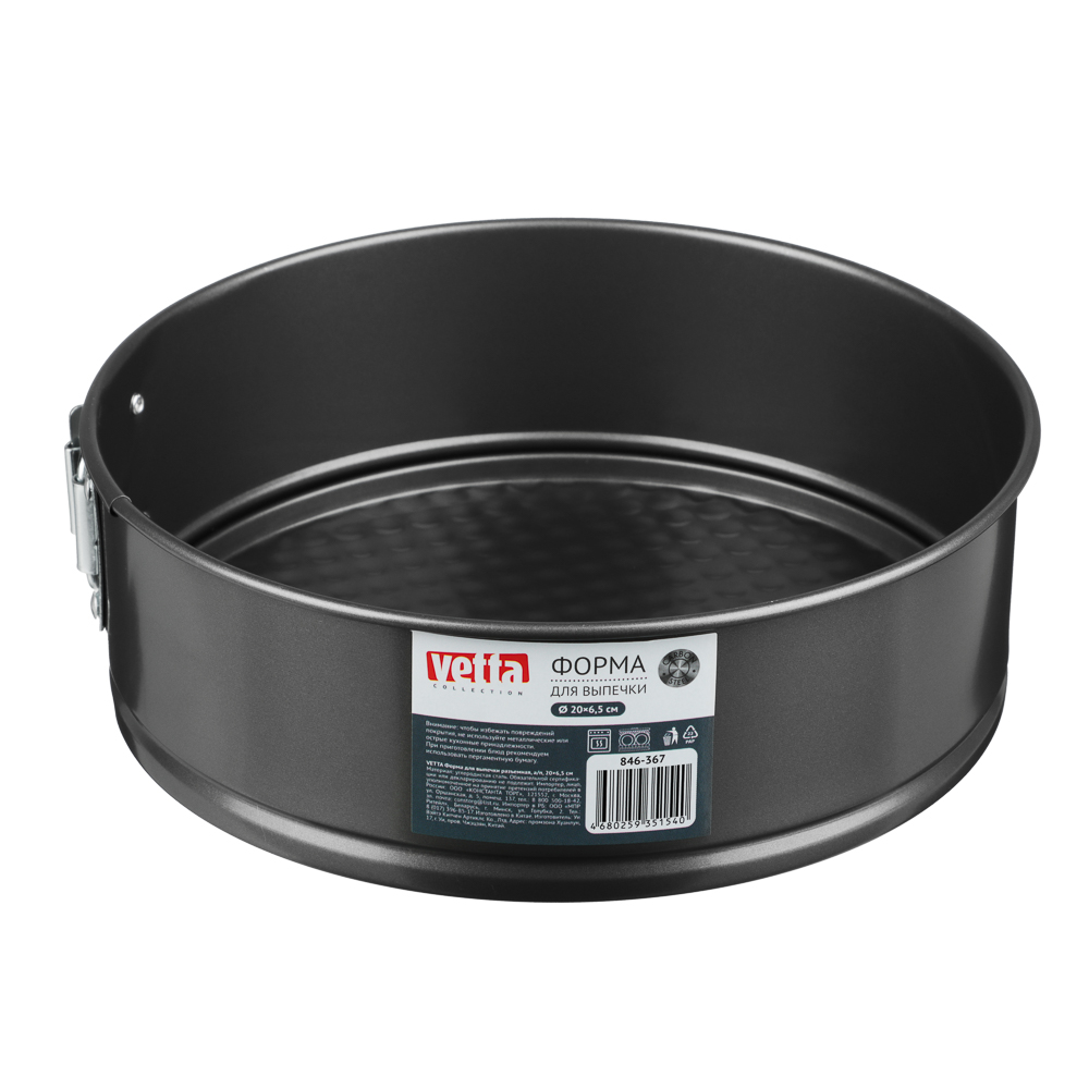 Форма для выпечки разъемная диаметром 20 см и высотой бортика 6,5 см изготовлена из углеродистой стали, с 2-х слойным антипригарным покрытием изнутри и снаружи - подходит для использования в духовых шкафах.