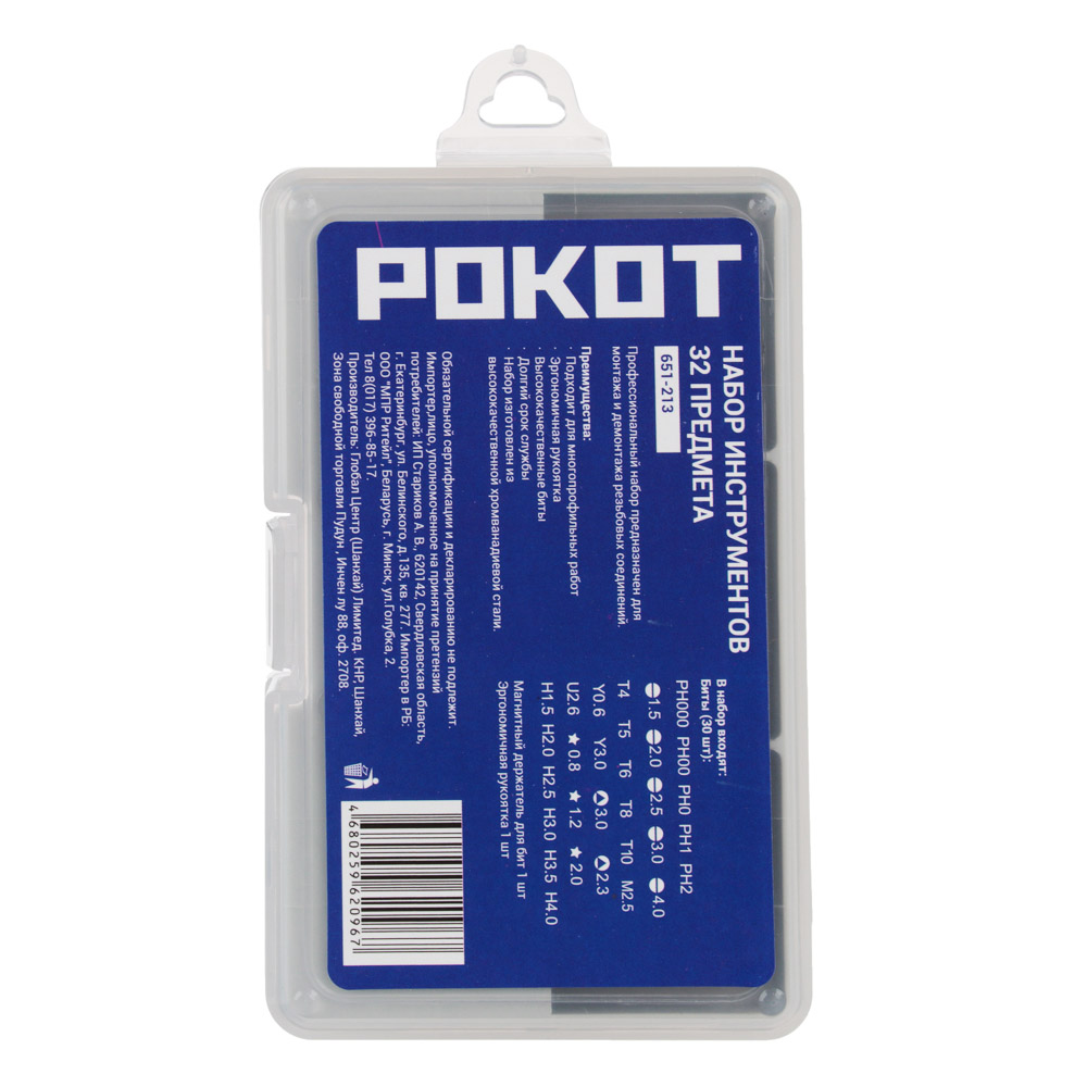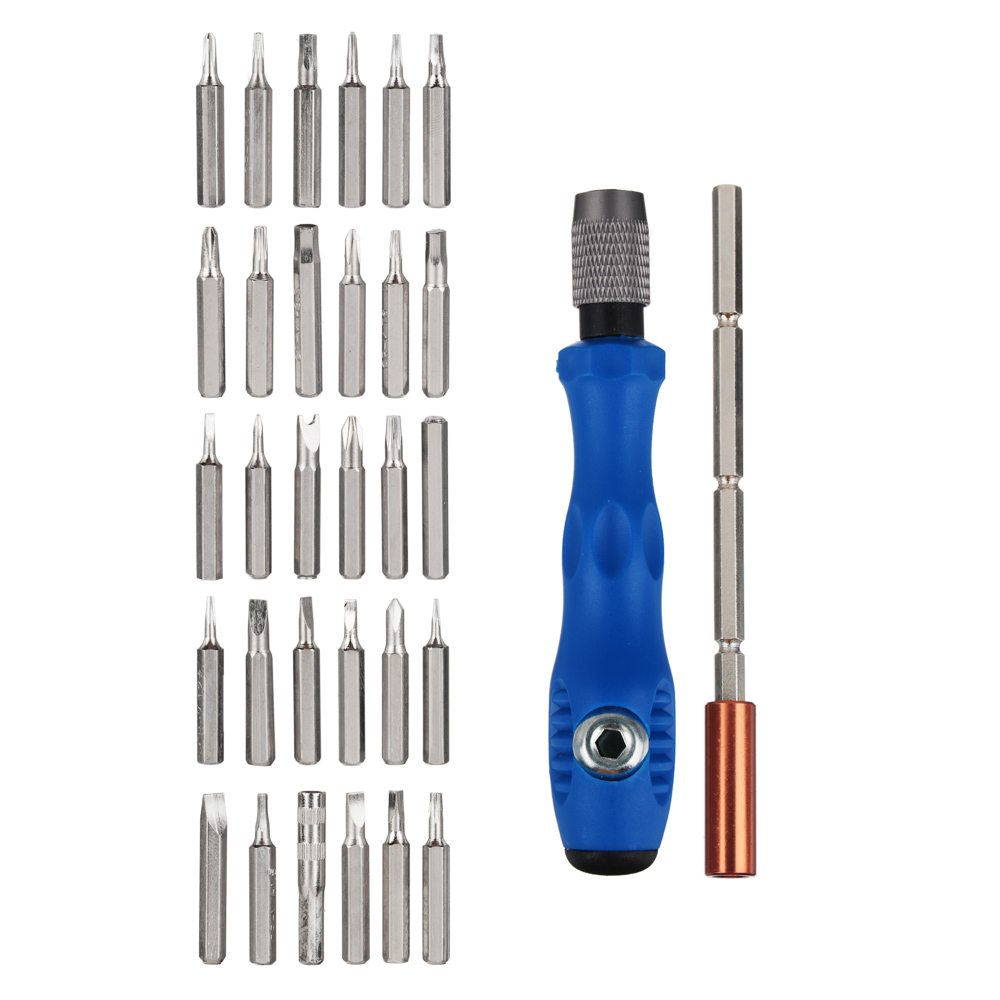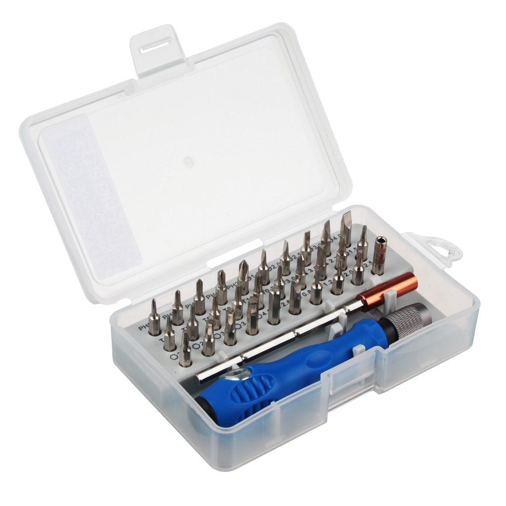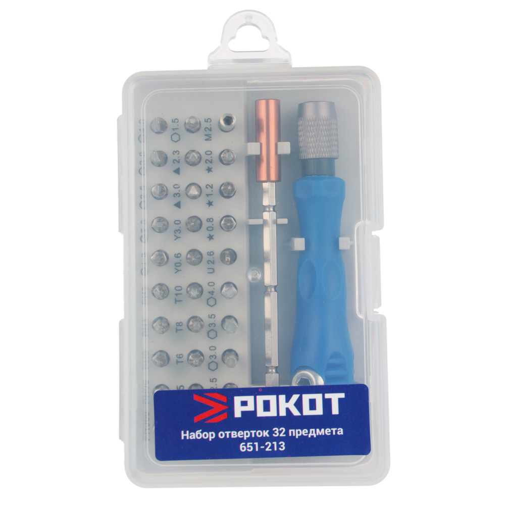 Профессиональный набор предназначен для монтажа и демонтажа резьбовых соединений.Преимущества:• Подходит для многопрофильных работ.• Эргономичная рукоятка.• Высококачественные биты.• Долгий срок службы.• Набор изготовлен из высококачественной хромованадиевой стали.Состав набора: Отвертка для бит; Крестовой шлиц: PH000, PH00, PH0, PH1, PH2; Прямой шлиц: SL1.5, SL2, SL2.5, SL3, SL4; Шлиц TORX: T4, T5, T6, T8, T10; Тройной квадрат: M2.5; Шлиц типа Tri-point: Y0.6, Y3.0; Треугольный шлиц: 3.0, 2.3; Шестигранный шлиц: H1.5, H2.0, H2.5, H3.0, H3.5, H4.0; Головка под вилочный ключ: 2.6; Защищенный TORX: TR0.8, TR1.2, TR2.0; Магнитный держатель для бит - 1 шт.; Эргономичная рукоятка - 1 шт.