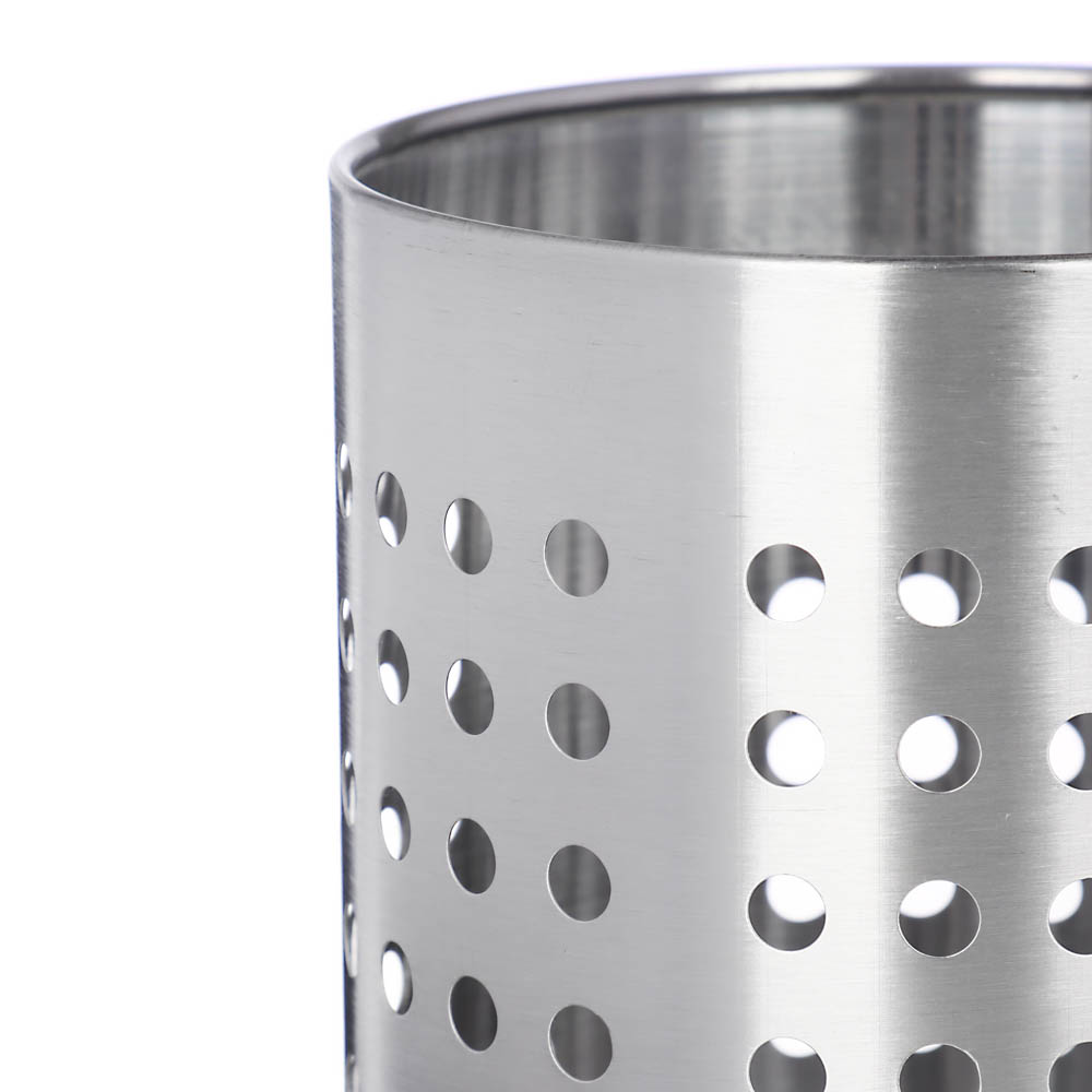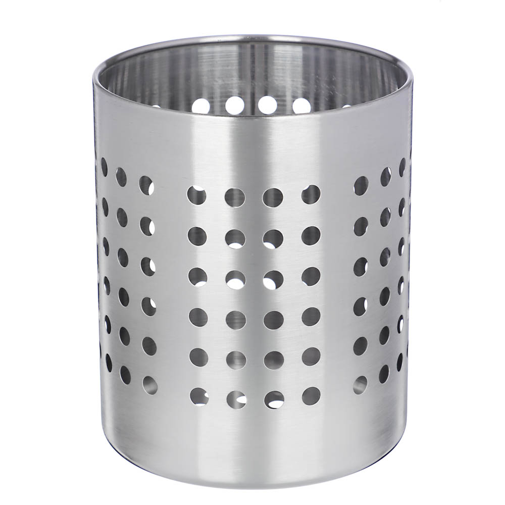 Подставка Satoshi для столовых приборов украсит кухню или ресторан в стиле хай-тек, легко впишется и в классический дизайн. Подставка для столовых приборов 12х14 см Satoshi - это компактная подставка, которая позволяет хранить ложки, вилки, ножи, лопатки и другие кухонные принадлежности в одном месте. Отличается большой вместительностью при скромном размере. Изготовлена из качественной нержавеющей стали. Имеет небольшие отверстия для отвода лишней влаги. Универсальный дизайн и форма позволяют использовать подставку как для хранения кухонной утвари, так и для канцелярских принадлежностей, а также предметов хобби и творчества.