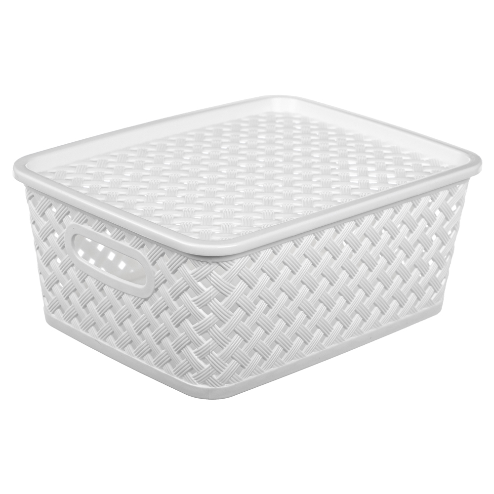 Пластиковая корзинка для хранения мелочей «Сеул» предназначена для косметики, бытовой химии и прочего. Пластик практичен, легко моется, не впитывает запахи, поэтому такую корзинку можно использовать в любой комнате, так как она не боится влаги, сырости, перепадов температуры. Корзинка украсит любую комнату и поможет организовать хранение на открытых полках. Крышка плотно прилегает и надежно удерживает содержимое внутри. Размер 25x20x10 см. В ассортименте 2 цвета.