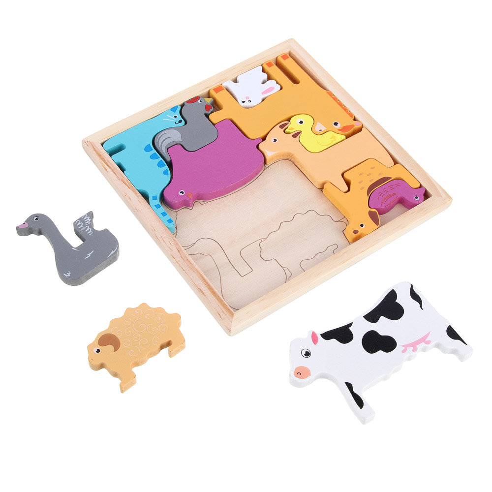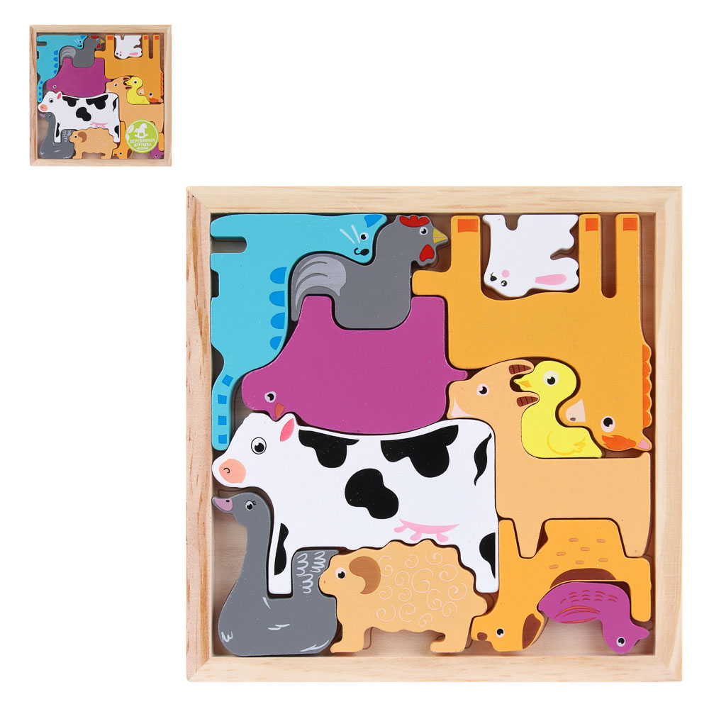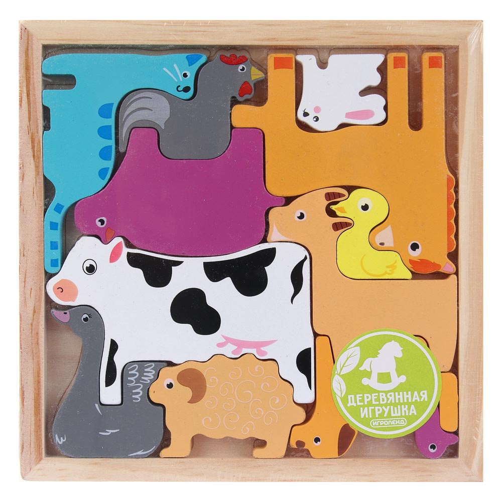 Развивающая игрушка для малышей ИГРОЛЕНД «Головоломка деревянная» поможет ребенку развить логическое мышление, внимательность, мелкую моторику, а также познакомит его с новыми предметами, названиями животных, фруктов и транспортных средств. Игрушка представляет собой поле с рамкой и контурами фигур. Задача ребенка – расположить фигуры по указанному шаблону так, чтобы все они уместились в рамку. Забавные фигурки из натурального дерева не имеют заусенцев, гладко обработаны и окрашены в яркие привлекательные цвета, поэтому головоломка непременно привлечет внимание малыша. Соберите всю коллекцию из 8 дизайнов.