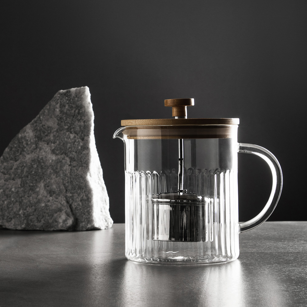 Стеклянный заварочный чайник BY «Teya» имеет эксклюзивный дизайн с рельефной поверхностью. Крышка из бамбука оснащена фильтром и имеет уплотнитель, который обеспечивает плотное прилегание и не выпускает тепло. Чайник прекрасно подходит для приготовления горячих чайных, фруктовых и травяных напитков и поможет организовать эффектную подачу напитка на стол. Выдерживает нагрев до 200С. Имеет большой размер 1,2 л, позволяя собрать за столом семью и друзей.