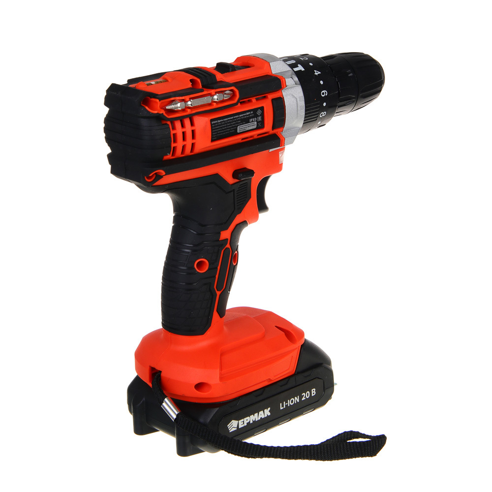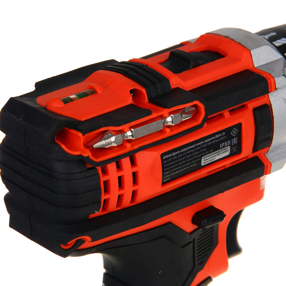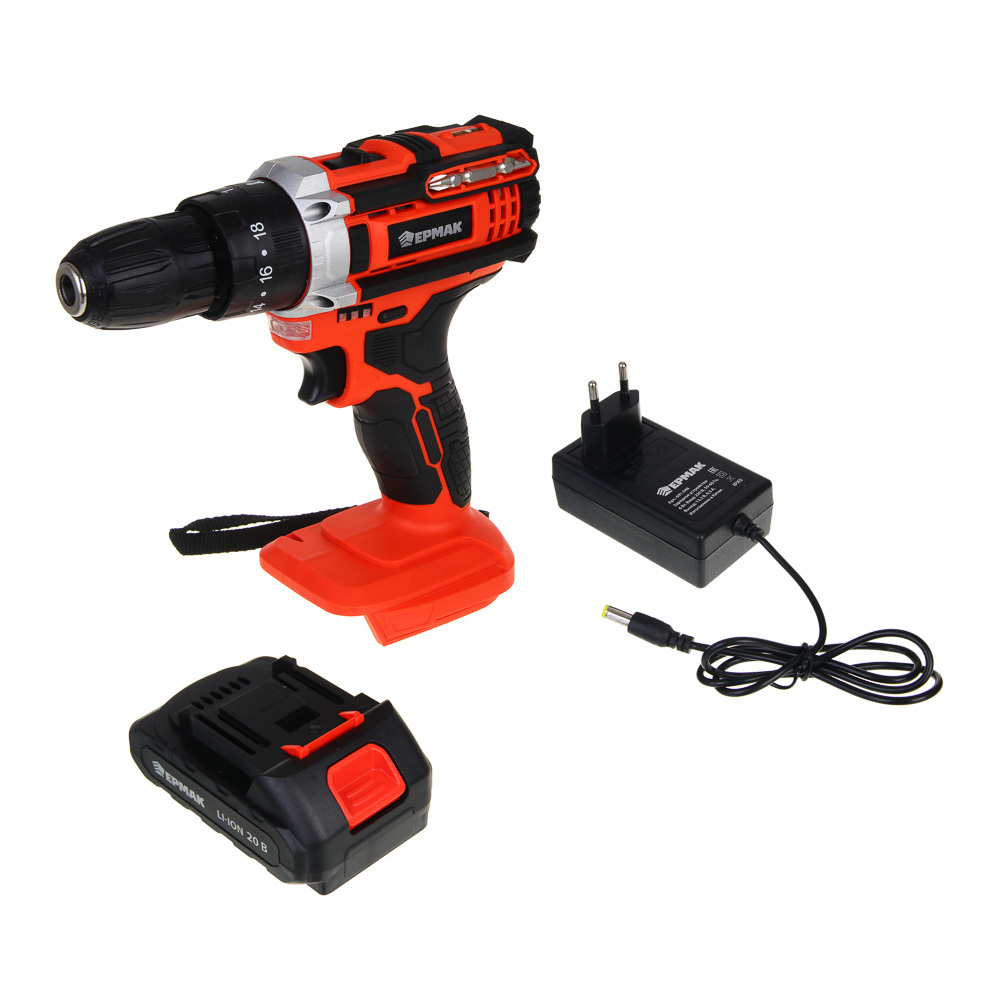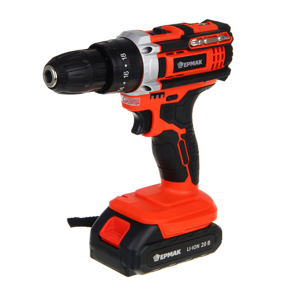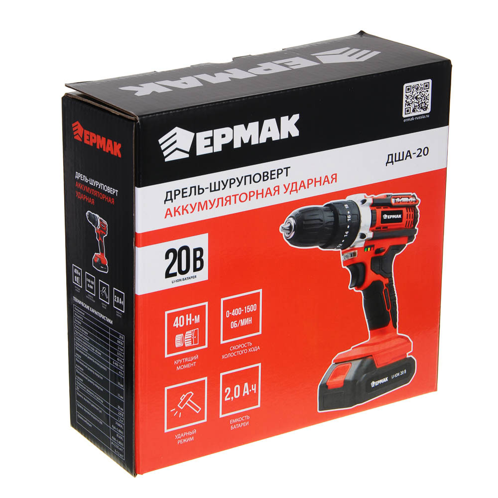 Дрель-шуруповерт аккумуляторная ударная ЕРМАК ДША-20 со съемной литий-ионной батареей 20 В емкостью 2А*ч – это полностью автономный электроинструмент, не требующий подключения к электросети. Незаменим для бытового использования, а также в строительстве, ремонте и во время проведения монтажных и демонтажных работ. Крутящий момент: 40 Н*м. Скорость холостого хода 0-400-1500 об/мин. Предусмотрен ударный режим, что позволяет быстро формировать отверстия в кирпиче или бетоне. Эргономичный корпус с антискользящей рукояткой делает процесс использования максимально контролируемым и комфортным. Зарядное устройство идет в комплекте.