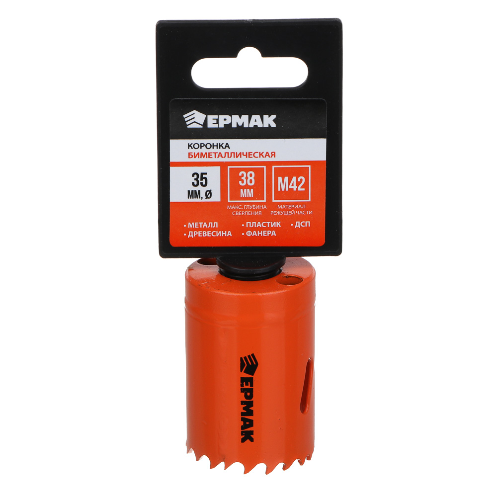 Биметаллическая коронка ЕРМАК размером 35 мм поможет быстро формировать отверстия в различных материалах, включая металл, пластик, древесину, фанеру и ДСП. Предназначена для использования совместно с дрелью. Максимальная глубина сверления – 38 мм. Материал режущей части сталь M42 отличается высокой твердостью и износостойкостью. Быстро просверливает отверстия с высокой точностью и с образованием гладкой кромки.