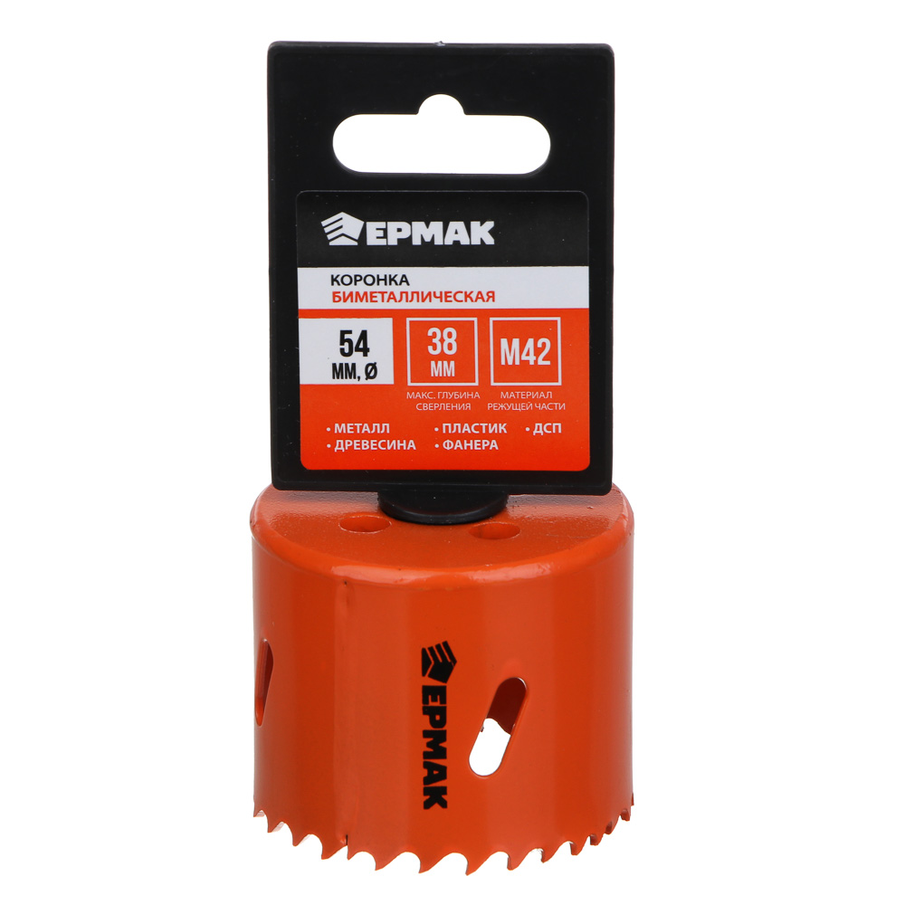 Биметаллическая коронка ЕРМАК размером 54 мм поможет быстро формировать отверстия в различных материалах, включая металл, пластик, древесину, фанеру и ДСП. Предназначена для использования совместно с дрелью. Максимальная глубина сверления – 38 мм. Материал режущей части сталь M42 отличается высокой твердостью и износостойкостью. Быстро просверливает отверстия с высокой точностью и с образованием гладкой кромки.