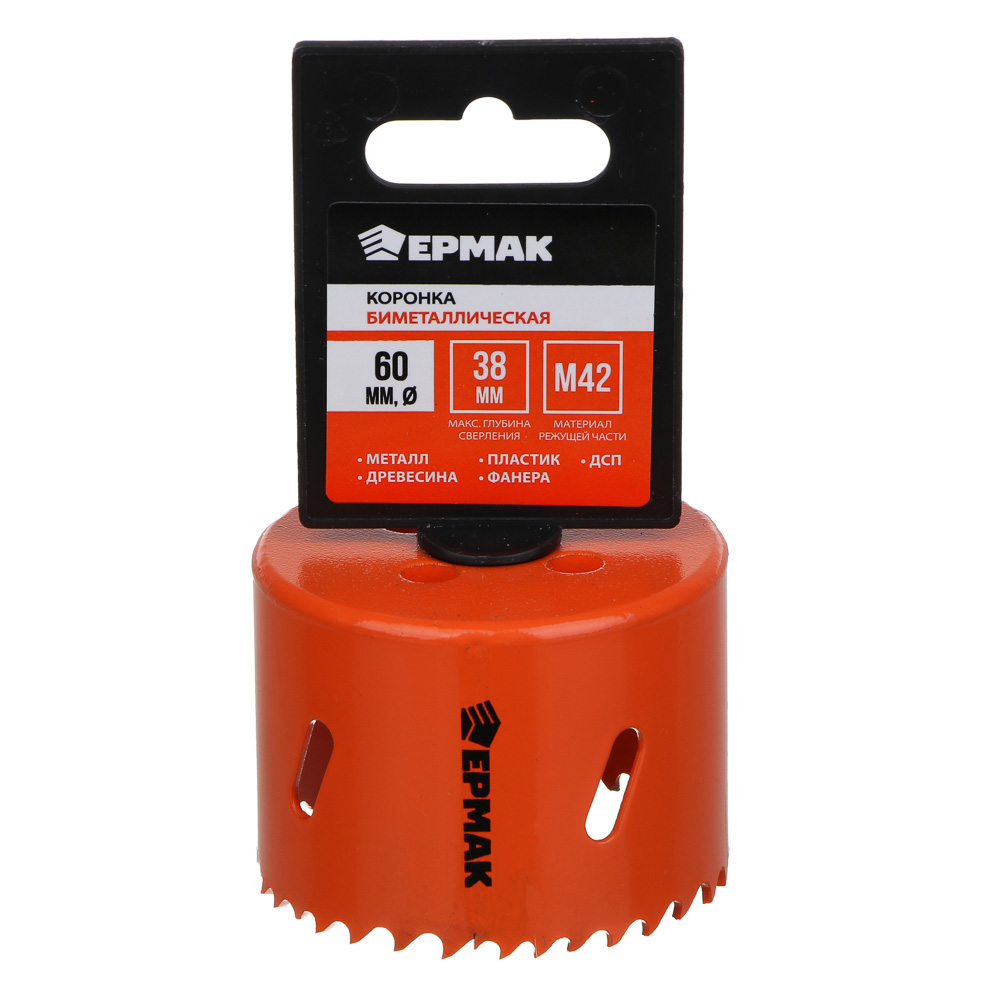 Биметаллическая коронка ЕРМАК размером 60 мм поможет быстро формировать отверстия в различных материалах, включая металл, пластик, древесину, фанеру и ДСП. Предназначена для использования совместно с дрелью. Максимальная глубина сверления – 38 мм. Материал режущей части сталь M42 отличается высокой твердостью и износостойкостью. Быстро просверливает отверстия с высокой точностью и с образованием гладкой кромки.