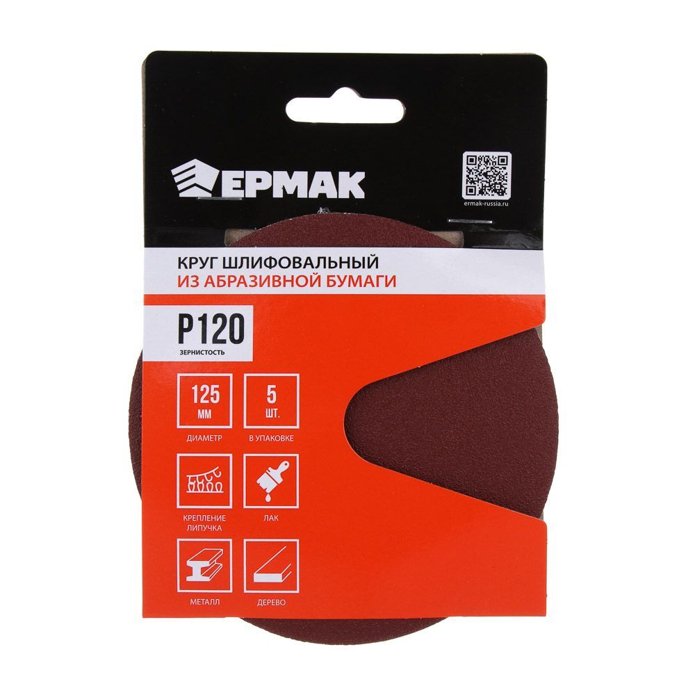 Круг шлифовальный из абразивной бумаги на велкро основе ЕРМАК без отверстий со степенью зернистости P120 диаметром 125 мм используется для черновой обработки поверхностей из металла и дерева. Подходит для снятия старого лакокрасочного покрытия. Качественный абразив имеет высокую износостойкость, бумага не рвется, что делает процесс работы максимально комфортным. Тип крепления – липучка. 5 штук в упаковке.