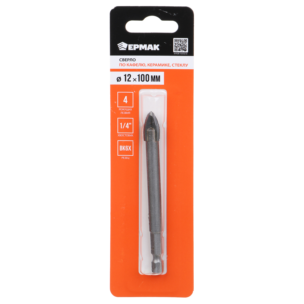 ЕРМАК Сверло по кафелю, керамике, стеклу, с четырьмя режущими лезвиями, шестигранный хвостовик, 12мм