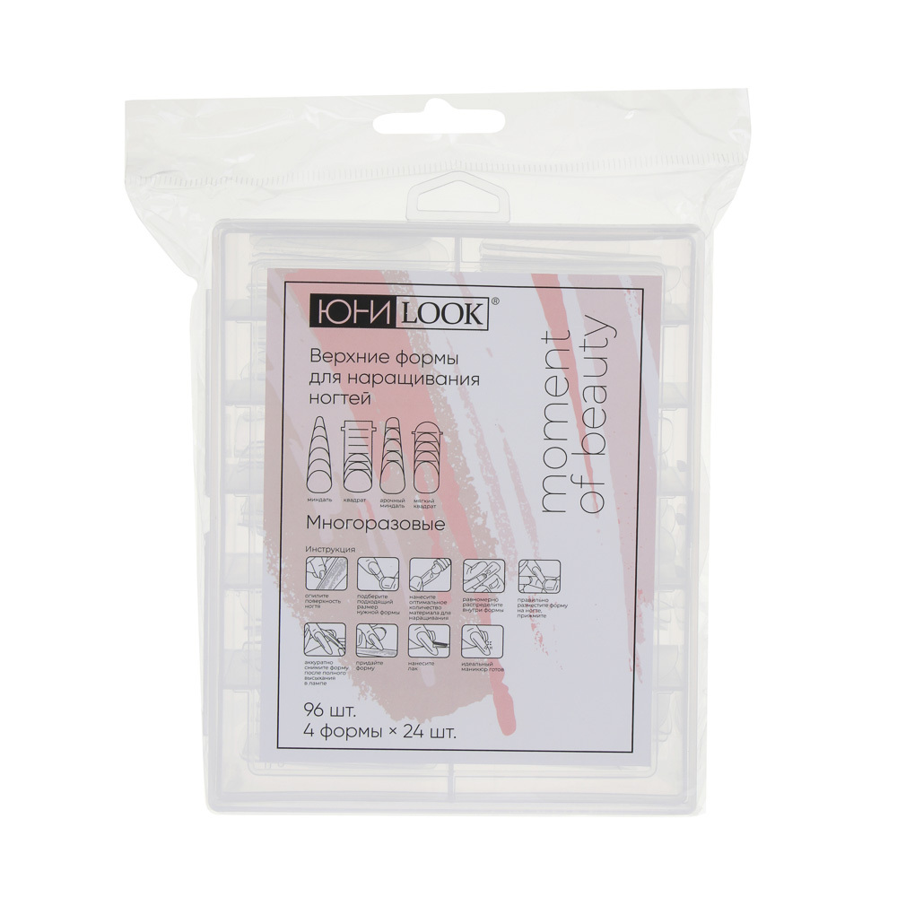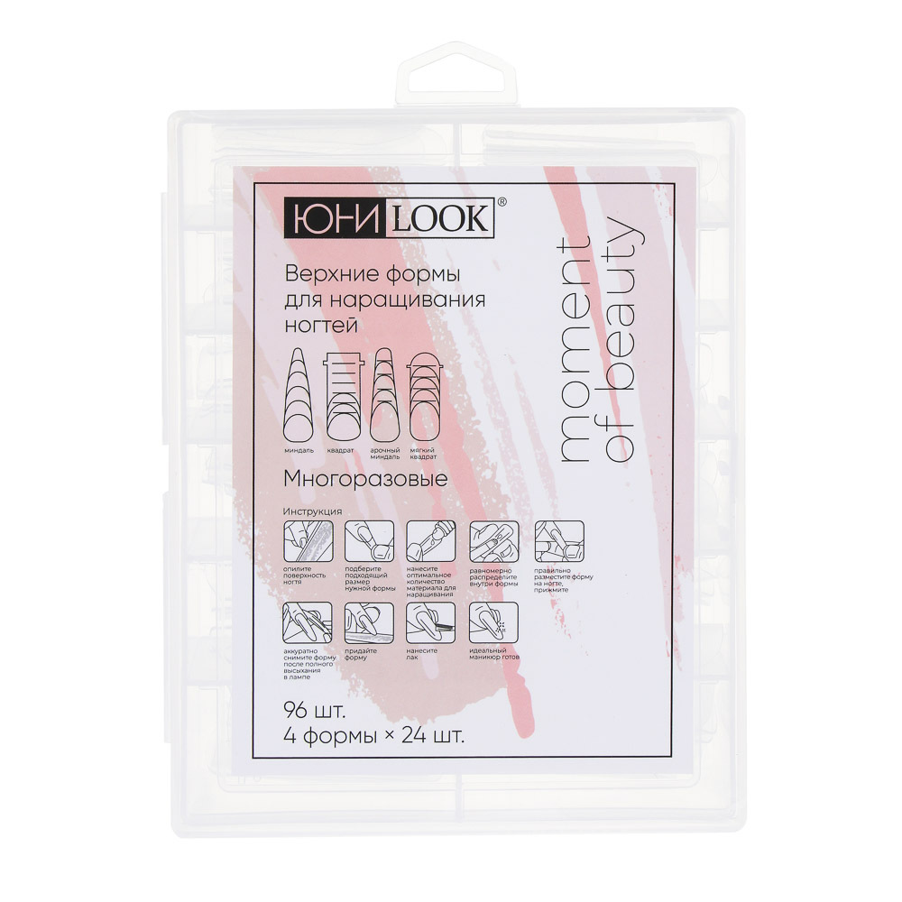 ЮНИLOOK Верхние формы для наращивания ногтей 96 шт (4 формы*24шт), пластик