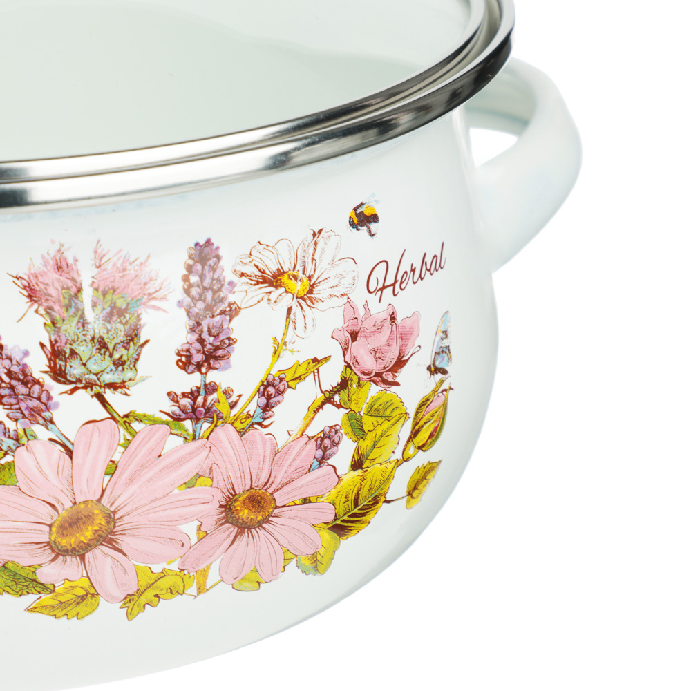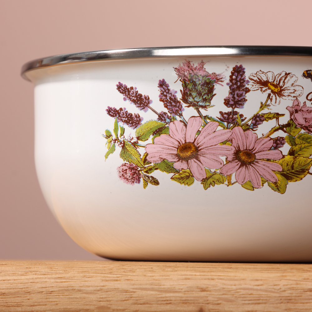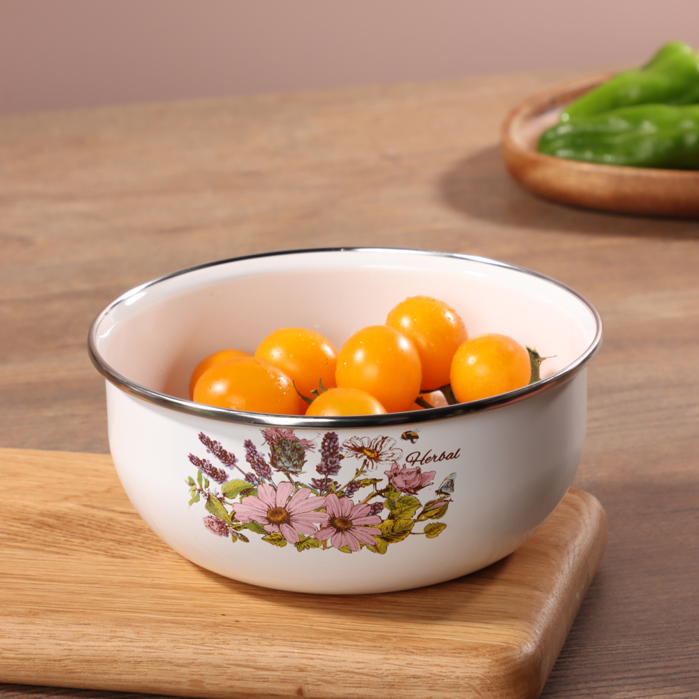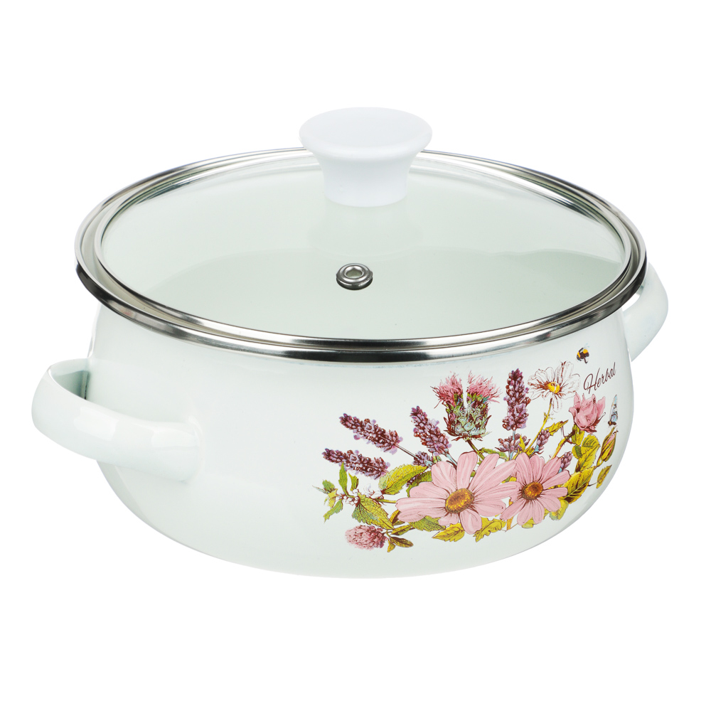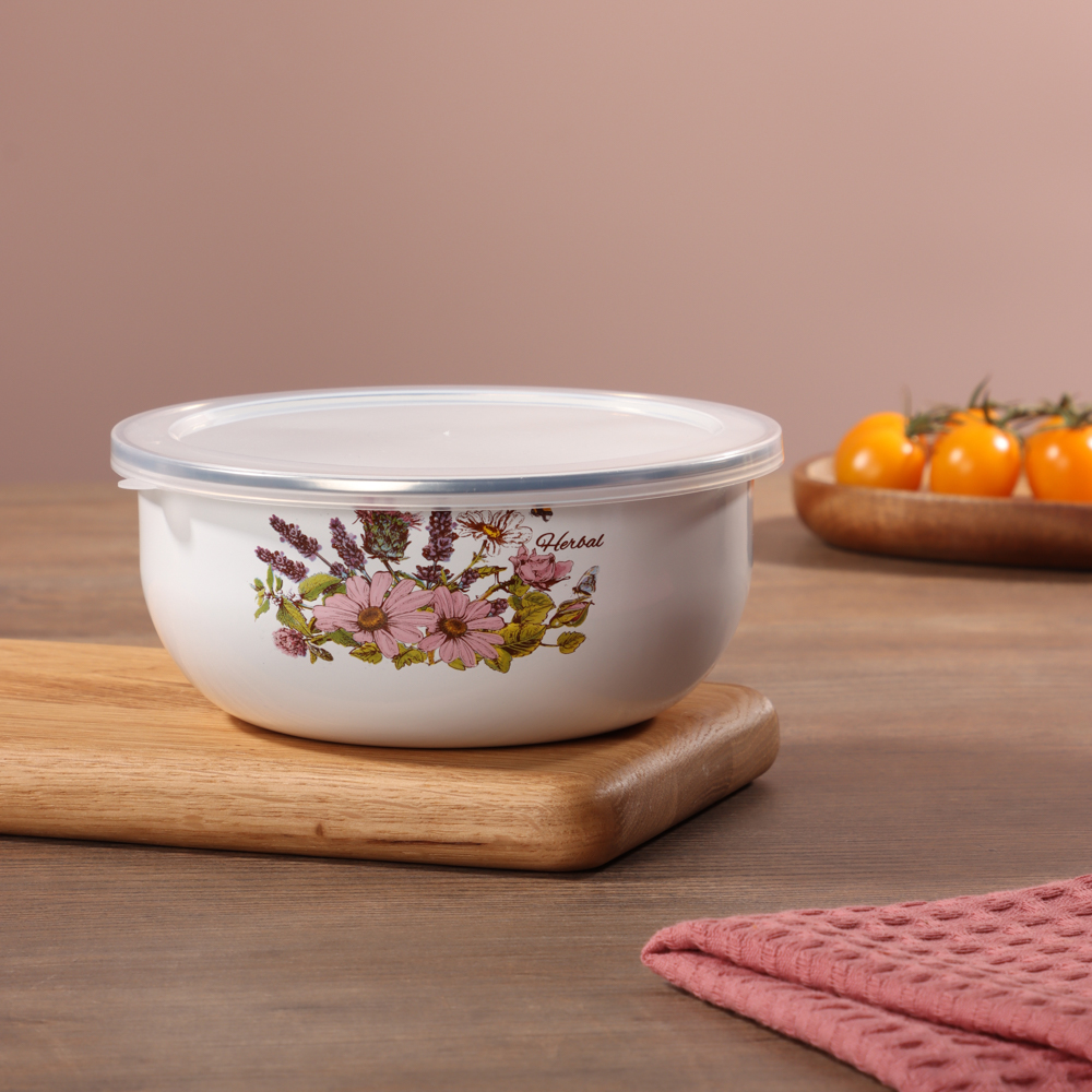 Кухонная посуда должна быть не только безопасной и крепкой, но и красивой. Набор из двух эмалированных мини-кастрюль и салатника будет ежедневно радовать глаза хозяйки и вдохновлять на приготовление новых шедевров. Эмаль — безопасный материал, который не влияет на вкус и запах пищи. Универсальный вариант для первых и вторых блюд. Идеально подходит для хранения еды в холодильнике.Преимущества:• три предмета разного объема — 0,7 и 1,1 л,• салатник с прозрачной пластиковой крышкой,• две кастрюльки с крышками из жаропрочного стекла,• материал — высокопрочная сталь,• если не хочется мыть вручную, можно доверить это дело посудомоечной машине,• посуда украшена привлекательным цветочным принтом на белом фоне.