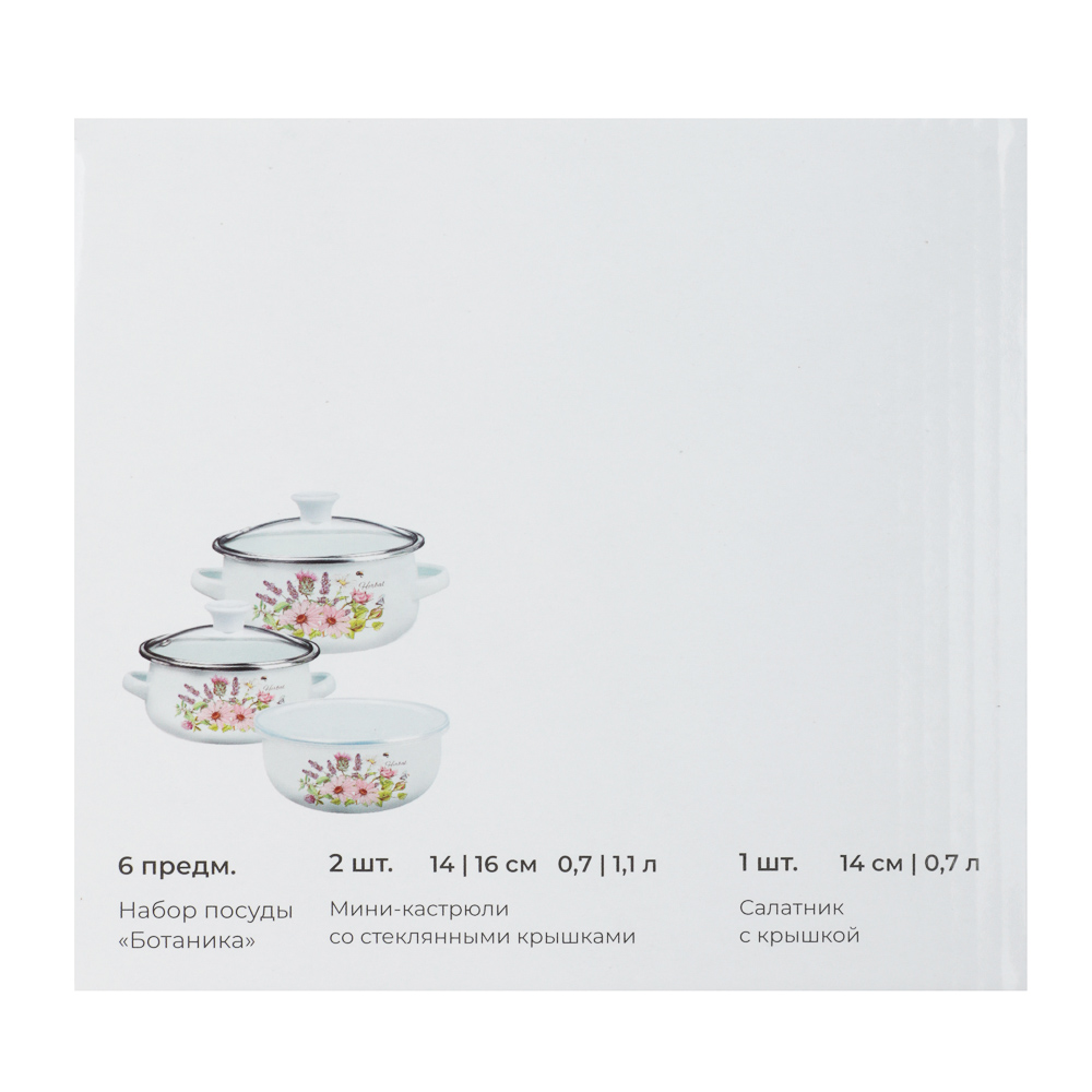 Набор мини-кастрюли 2шт.+салатник 1шт., с крышками, 6 пр (14/16/+14см, 0,7/1,1+0,7л) "Ботаника"