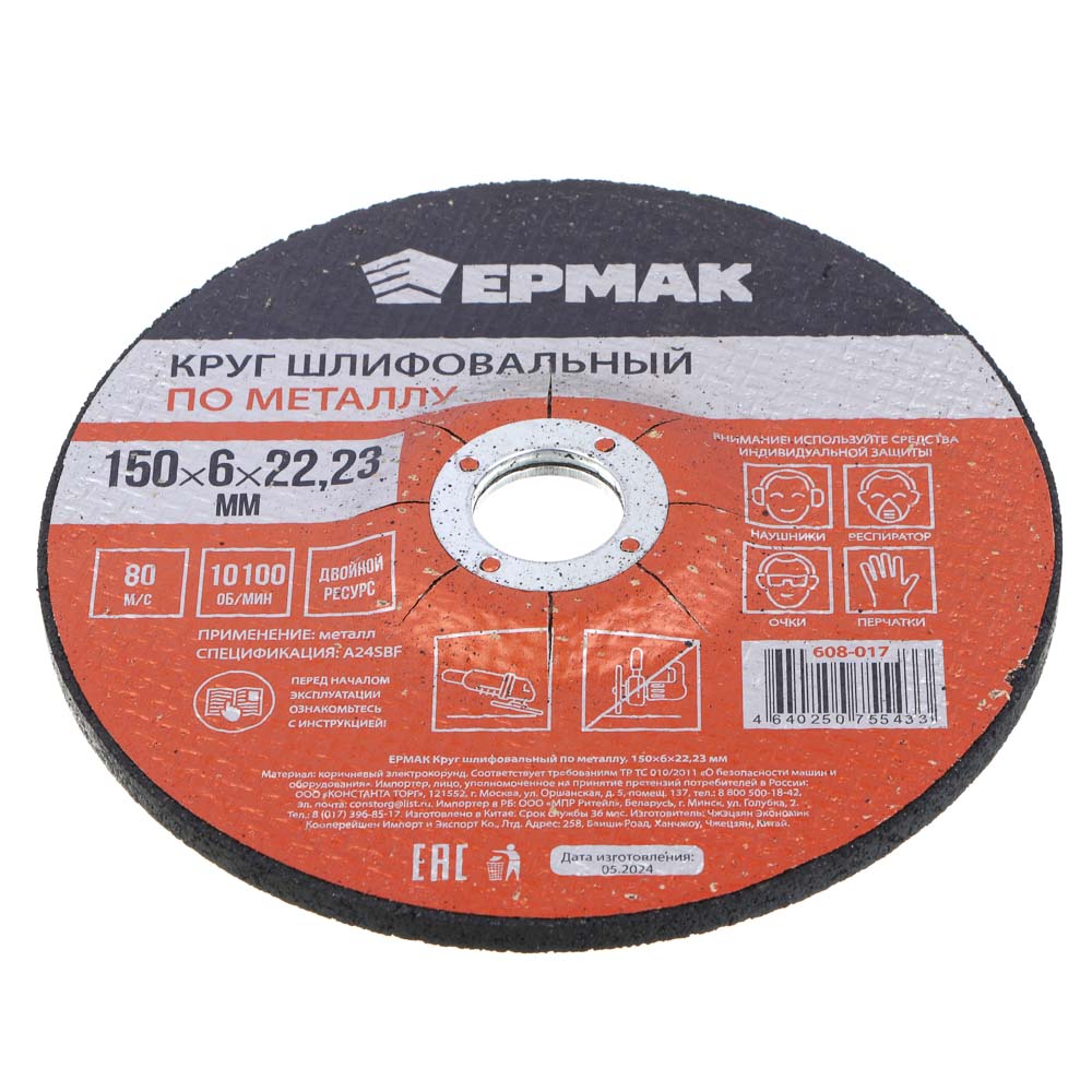 Круг шлифовальный по металлу ЕРМАК 150х6х22,23 мм, 80 м/с предназначен для работы с угловыми шлифовальными машинами с максимальным количеством оборотов 10100 об/мин. Подходит для черновой обработки и полировки поверхностей и изделий из металла, а также для зачистки и снятия ржавчины и старой краски с металлоконструкций. Изделие имеет высокую износостойкость и двойной ресурс службы.