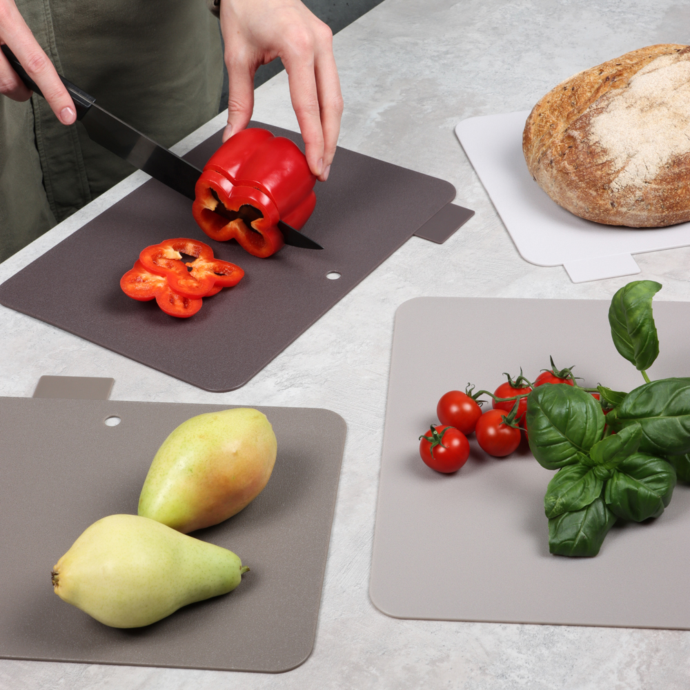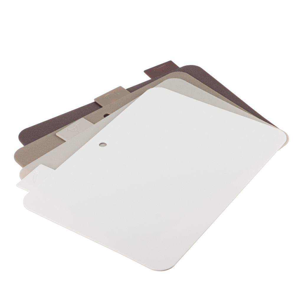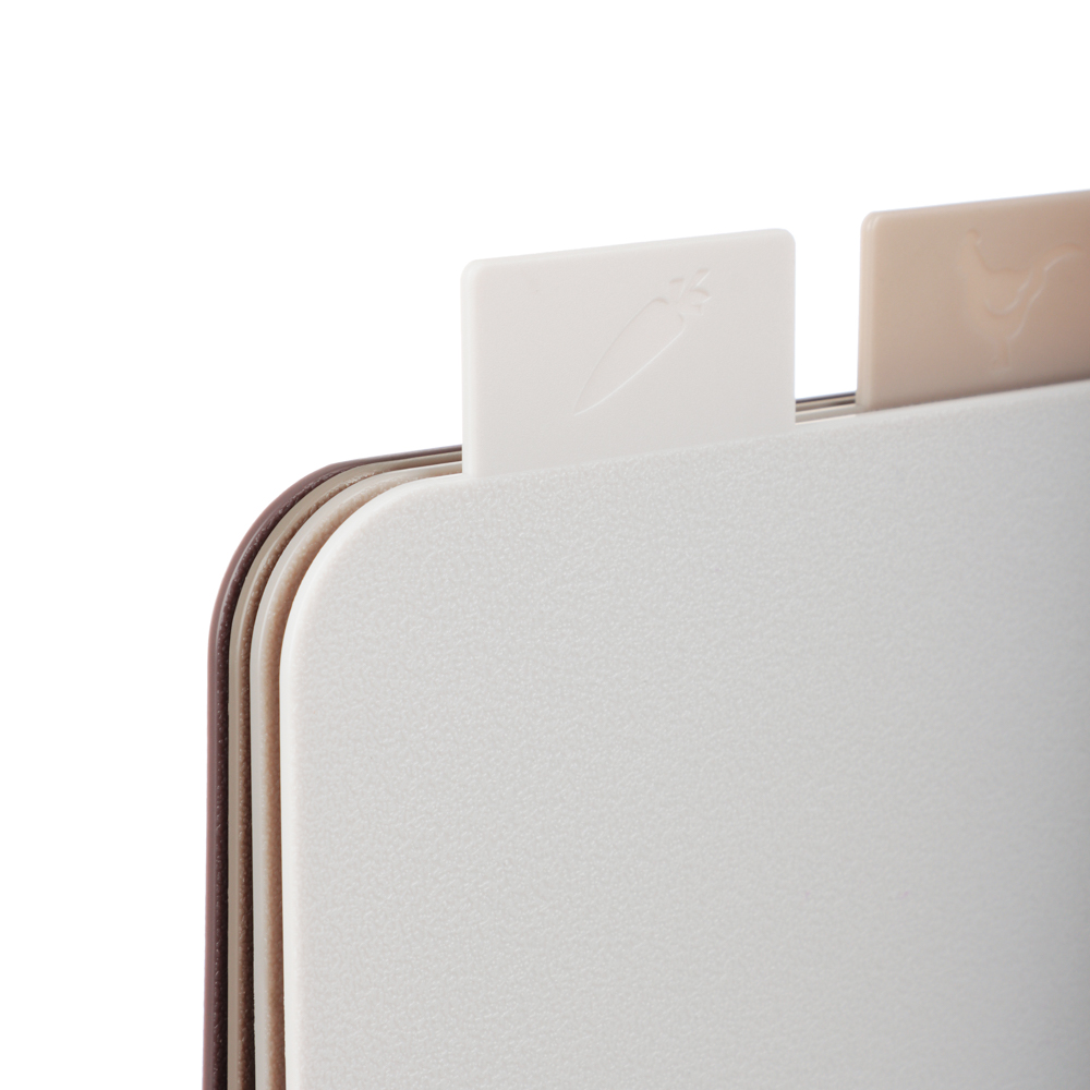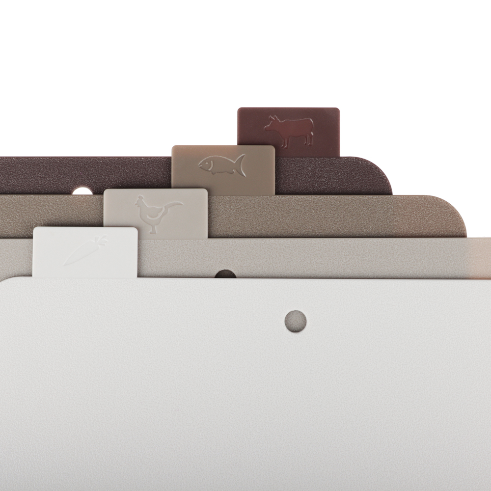 Набор разделочных досок на подставке SATOSHI из 5 предметов включает 4 пластиковые доски размером 30х24х0,2 см и устойчивую подставку. Доски имеют маркировку в виде ярлычка, за который удобно брать доску и извлекать ее из подставки. На маркировке указаны иконки с назначением каждой доски: для рыбы, мяса, овощей. Таким образом, вы не перепутаете доски, а процесс приготовления блюд будет проходить в идеальных санитарных условиях. Доски легко моются, не повреждают заточку ножей, имеют оптимальный размер. Универсальный дизайн впишется в любой интерьерный стиль кухни.
