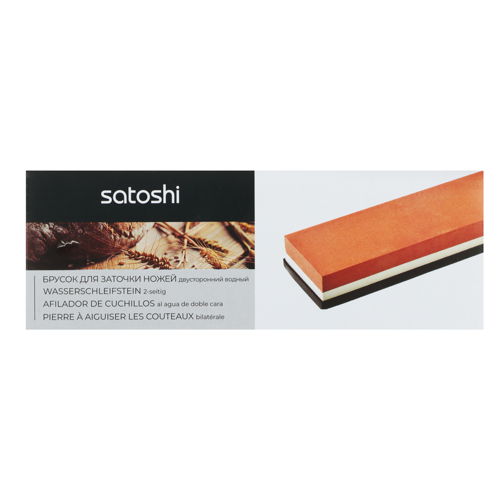 Брусок для заточки ножей SATOSHI позволит всегда вашим ножам оставаться острыми в такой степени, что нарезка тонких ломтиков продуктов никогда не будет проблемой. Точильный водный камень является универсальным инструментом, который нужен как для обслуживания, так и для ремонта ножей и бритв, а также других приспособлений с режущей кромкой. Точильный камень 1000/3000 грит состоит из довольно грубых абразивных фракций и мягкой связующей матрицы. Такое сочетание позволяет использовать брусок для подготовительных работ по заточке ножей (удаления следов грубых операций, выравнивания лезвия и режущей кромки, предварительной заточки).