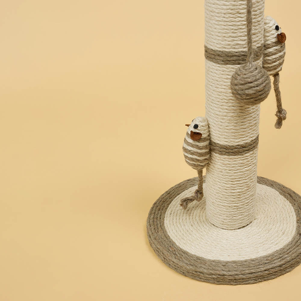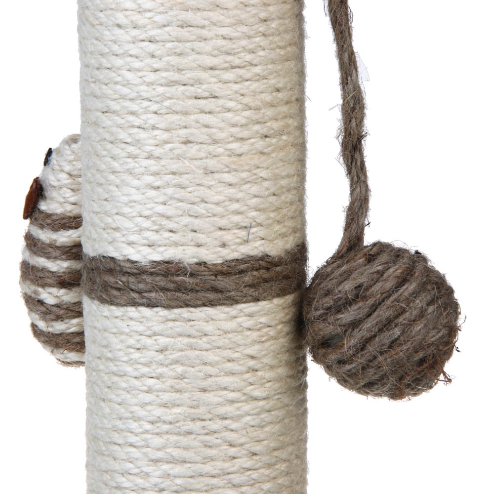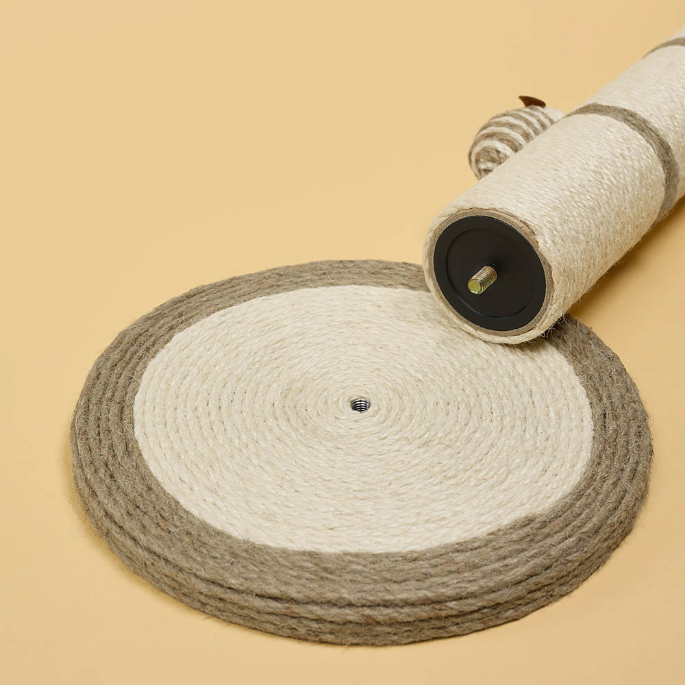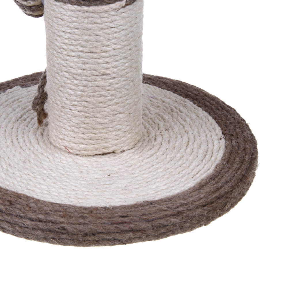 Напольная когтеточка для домашних животных VETTA – это незаменимое приспособление для кошек, живущих дома. Размер изделия – 24х40 см. Основание изготовлено из бамбука с внешней оплеткой из прочной сизалевой веревки. Декор в виде мышек, а также игрушка-мячик привлекут внимание питомца, обеспечивая его двигательную активность и снятие стресса в период отсутствия хозяев. Когтеточка абсолютно безопасна для кошек, не травмирует когти. Стильный дизайн в базовых оттенках бежевого и коричневого гармонично впишется в интерьер квартиры или дома.