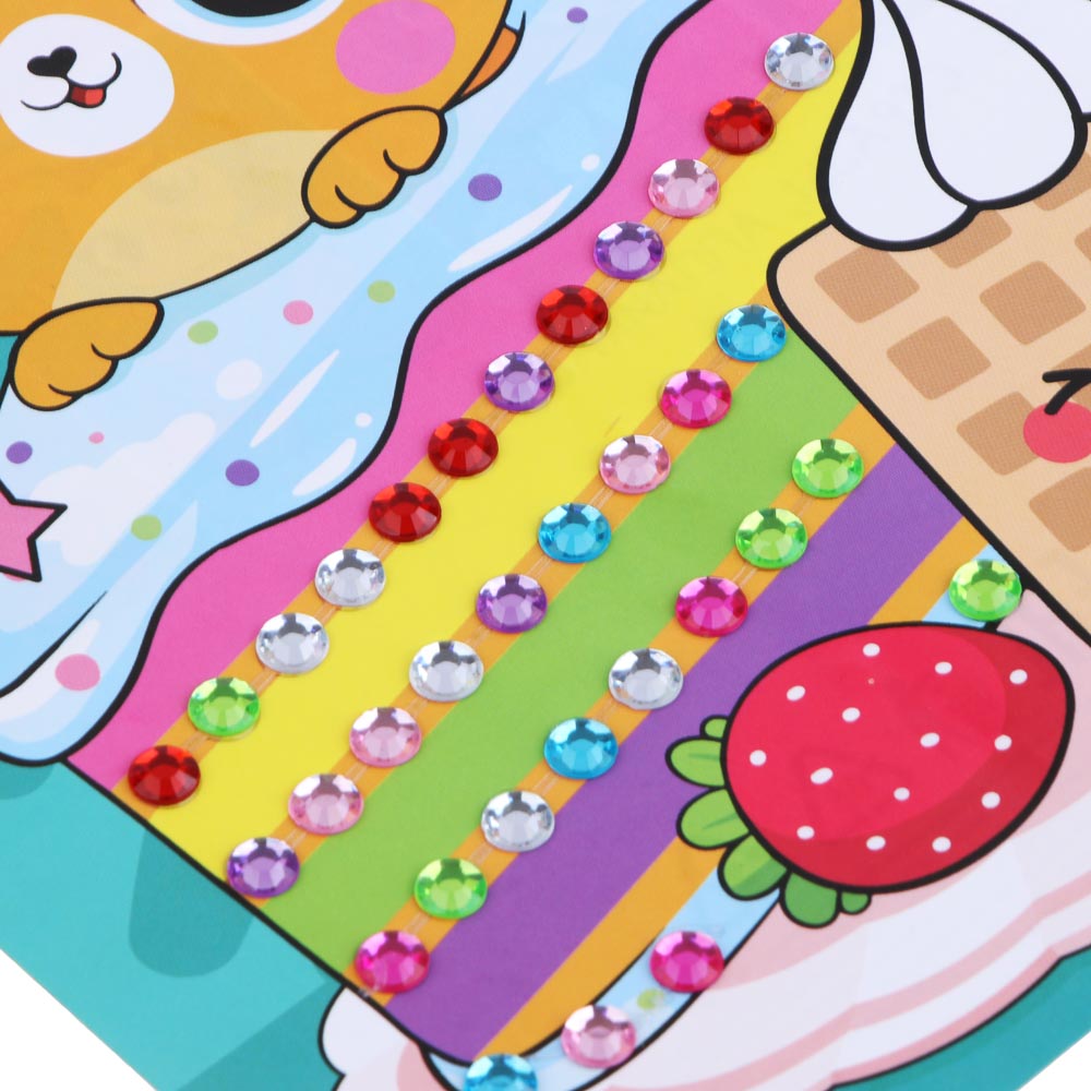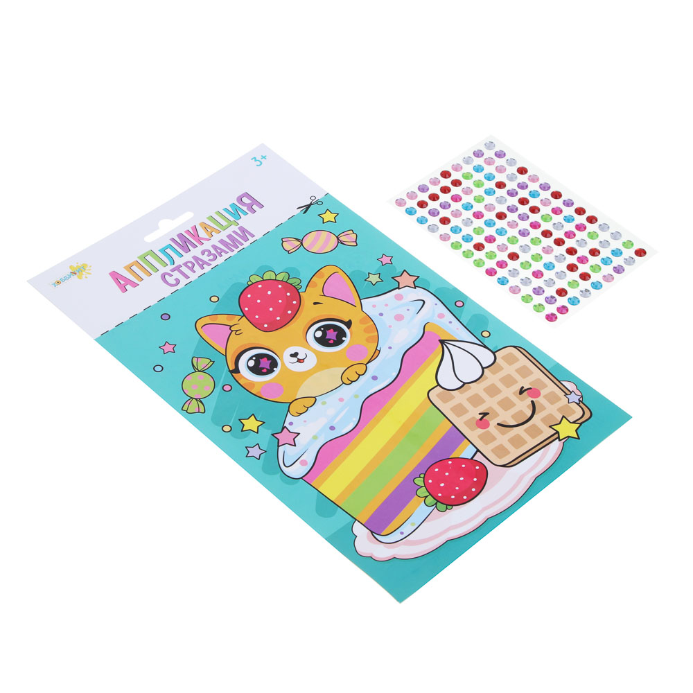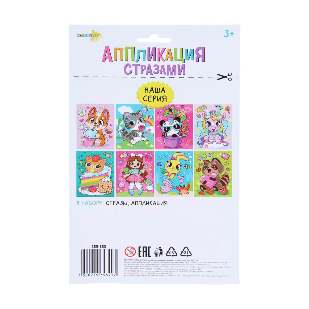 Аппликация стразами от ХОББИХИТ - это картонная картинка для аппликации и самоклеящиеся стразы. Стразы отделяют от основы и приклеивают на картинку. Полезно для творческих занятий с детьми, развивает мелкую моторику рук. Всего 8 дизайнов аппликации - яркие и милые иллюстрации. Подходит для детей от 3 лет.