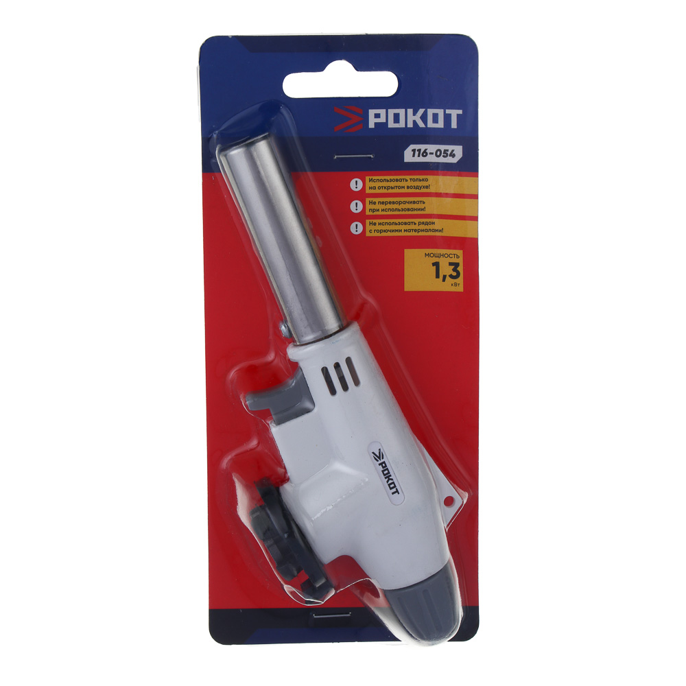Газовая горелка РОКОТ, пьезо, с керамическим изолятором и цанговым захватом пригодится для различных хозяйственных нужд, а также используется для розжига костра во время похода, для нагрева различных деталей во время ремонта и для создания золотистой корочки при приготовлении блюд. Диаметр сопла – 14,3 мм. Изготовлена из качественных материалов, имеет стабильное пламя, а керамический изолятор понижает давление при подаче газа, что делает процесс использования безопасным. Мощность – 1,3 кВт. Температура пламени – 1300 градусов Цельсия. Предусмотрена регулировка силы пламени.