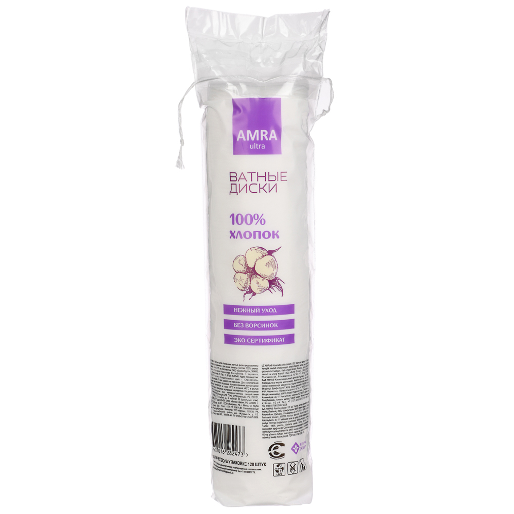 Ватные диски AMRA - это идеальное решение для деликатного ухода за кожей. В упаковке содержится 120 дисков, изготовленных из 100% хлопка. Они обеспечивают мягкость и комфорт при использовании благодаря отсутствию ворсинок. Ватные диски идеально подходят для удаления макияжа, а также для ежедневного ухода за лицом и телом. Они не оставляют ворсинок на коже и не вызывают раздражения, что особенно важно для чувствительной кожи.Упаковка с завязками обеспечивает удобство хранения и использования. Диски AMRA соответствуют высоким стандартам качества и предназначены для тех, кто ценит нежный и эффективный уход за собой.