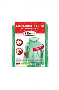 Купите товар «59931 Дождевик-пончо с рукавами полиэтилен 80*120см, зеленый 18 мк, 70гр Komfi» по оптовой цене с доставкой или самовывозом. В Екатеринбурге и других городах.