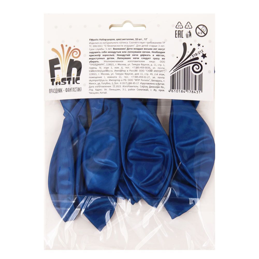 Набор шаров цвета металлик Fntastic включает 10 однотонных шаров размером 12 дюймов. Они имеют благородный цвет и станут украшением любого праздника. Их можно развесить по-отдельности или собрать в единую композицию в виде букета, а также использовать в различных праздничных конкурсах. 6 цветов в наборе: голубой, синий, фиолетовый, сиреневый, тиффани, морской.