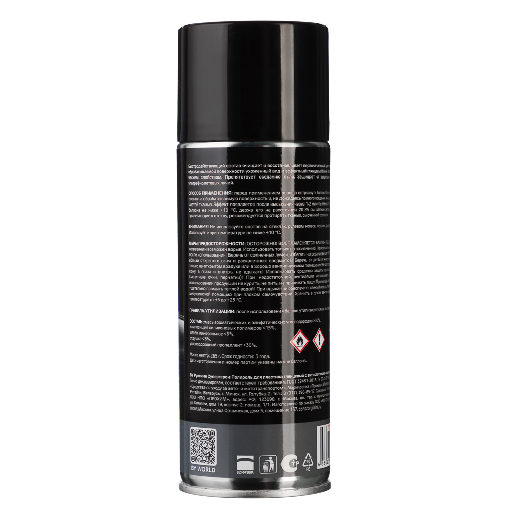 Быстродействующий состав очищает и восстанавливает первоначальный цвет пластика. Придает обрабатываемой поверхности ухоженный вид и эффектный глянцевый блеск. Обладает антистатическим свойством. Препятствует оседанию пыли. Защищает от выцветания и воздействия ультрафиолетовых лучей. В ассортименте.
