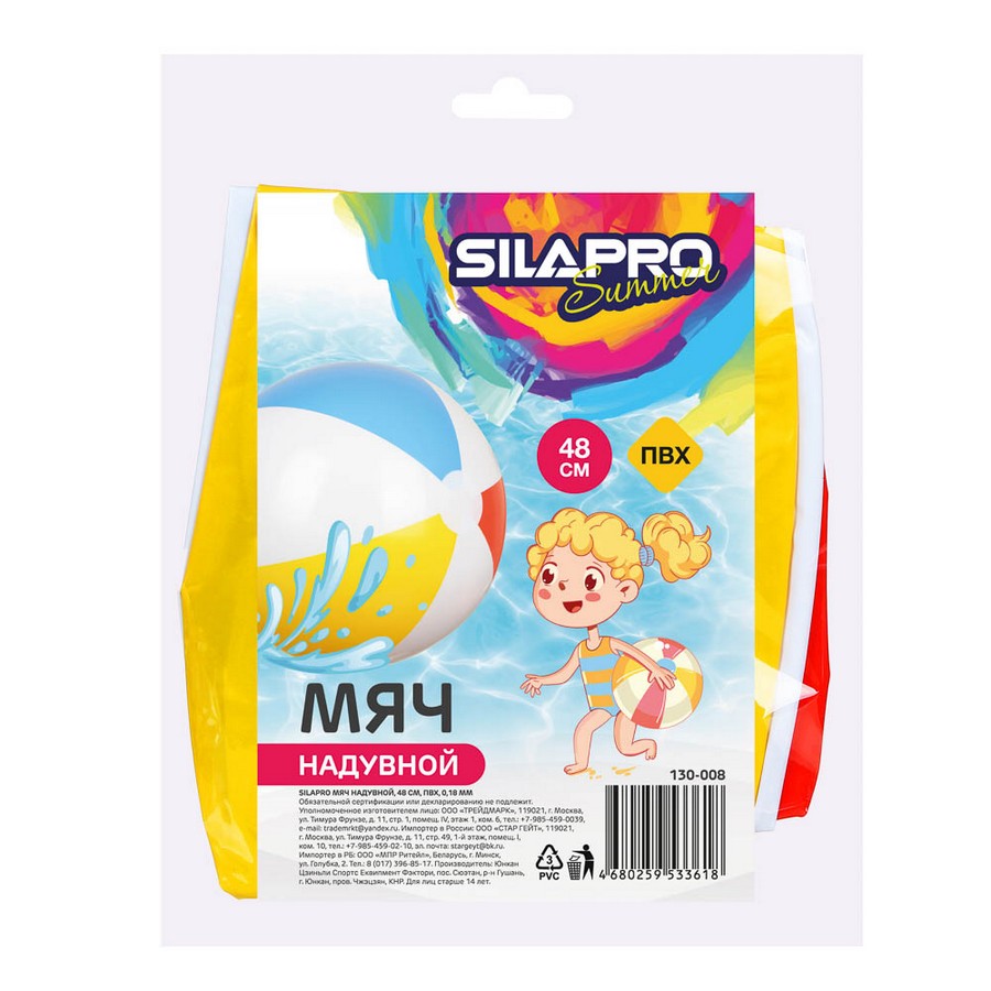 Большой надувной мяч отлично подойдет для игр на пляже или на природе. Также мяч можно использовать для игры в бассейне или море. Изготовлен из качественных материалов, благодаря чему прослужит вам не один сезон. Яркие краски понравятся как взрослым, так и детям, которые с удовольствием будут играть с мячом как наедине, так и с друзьями.