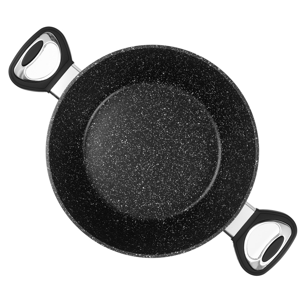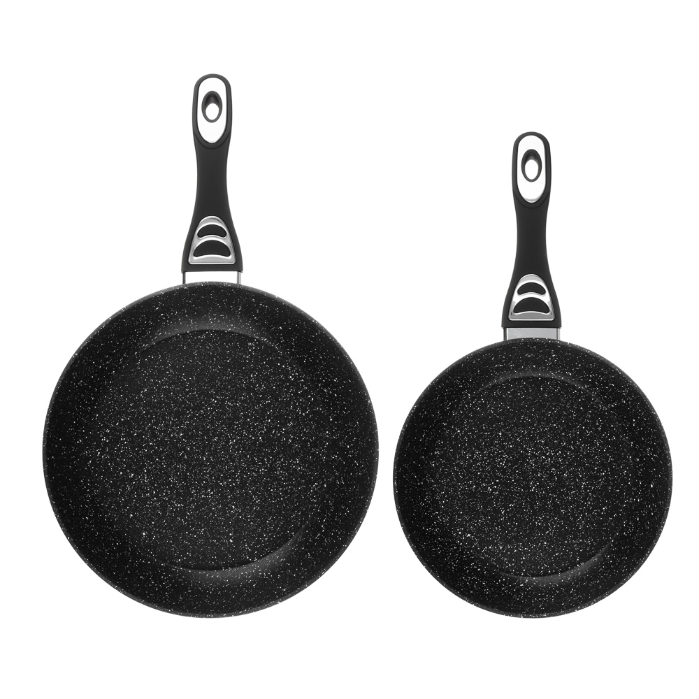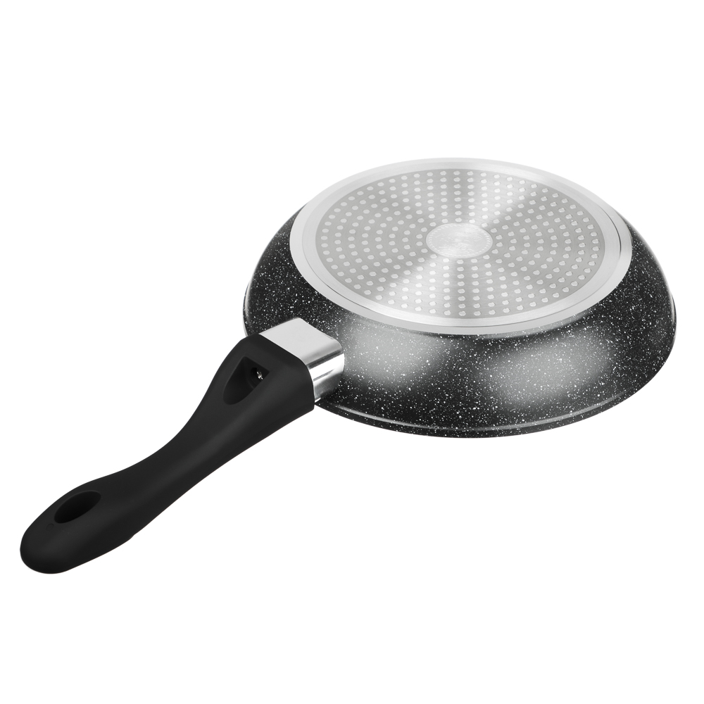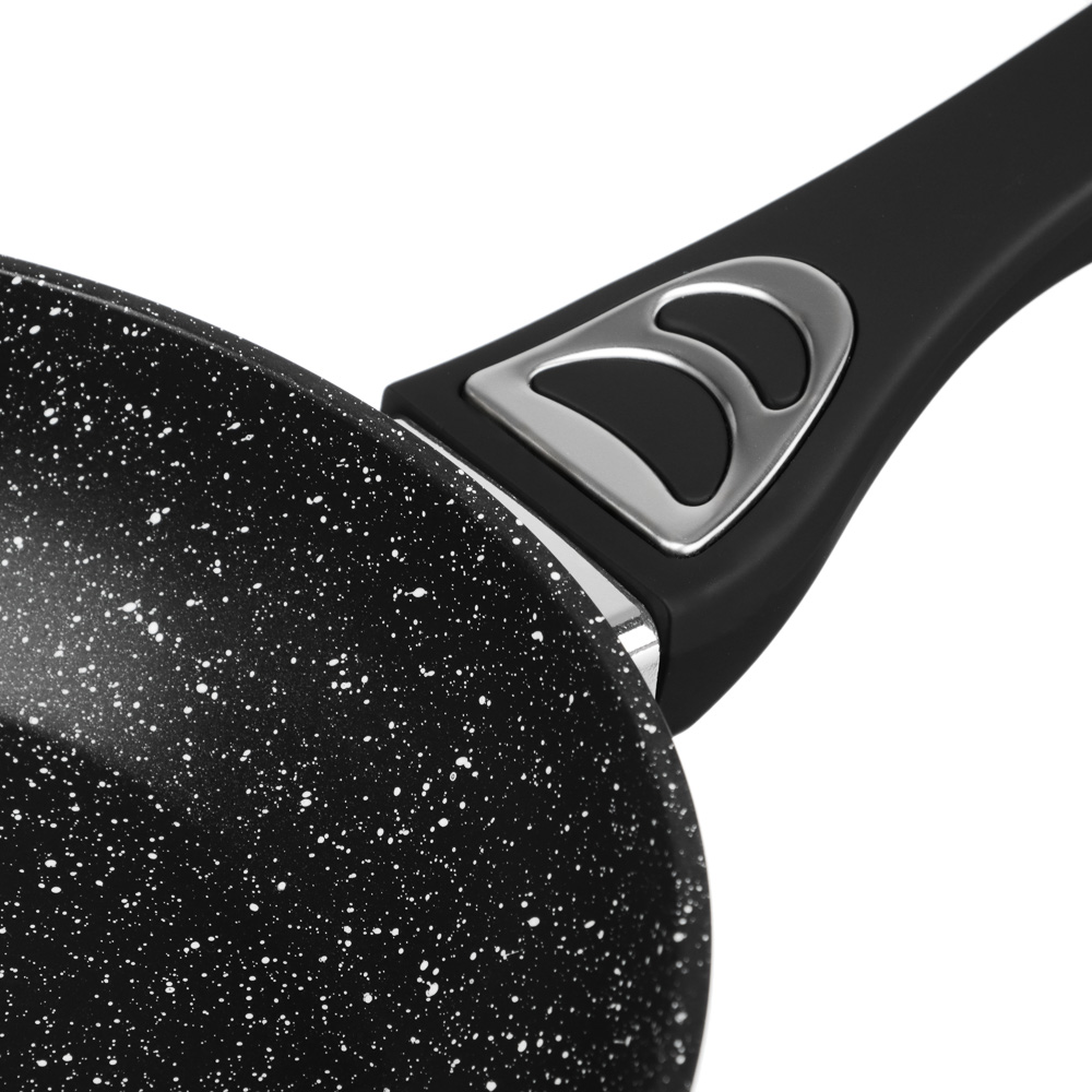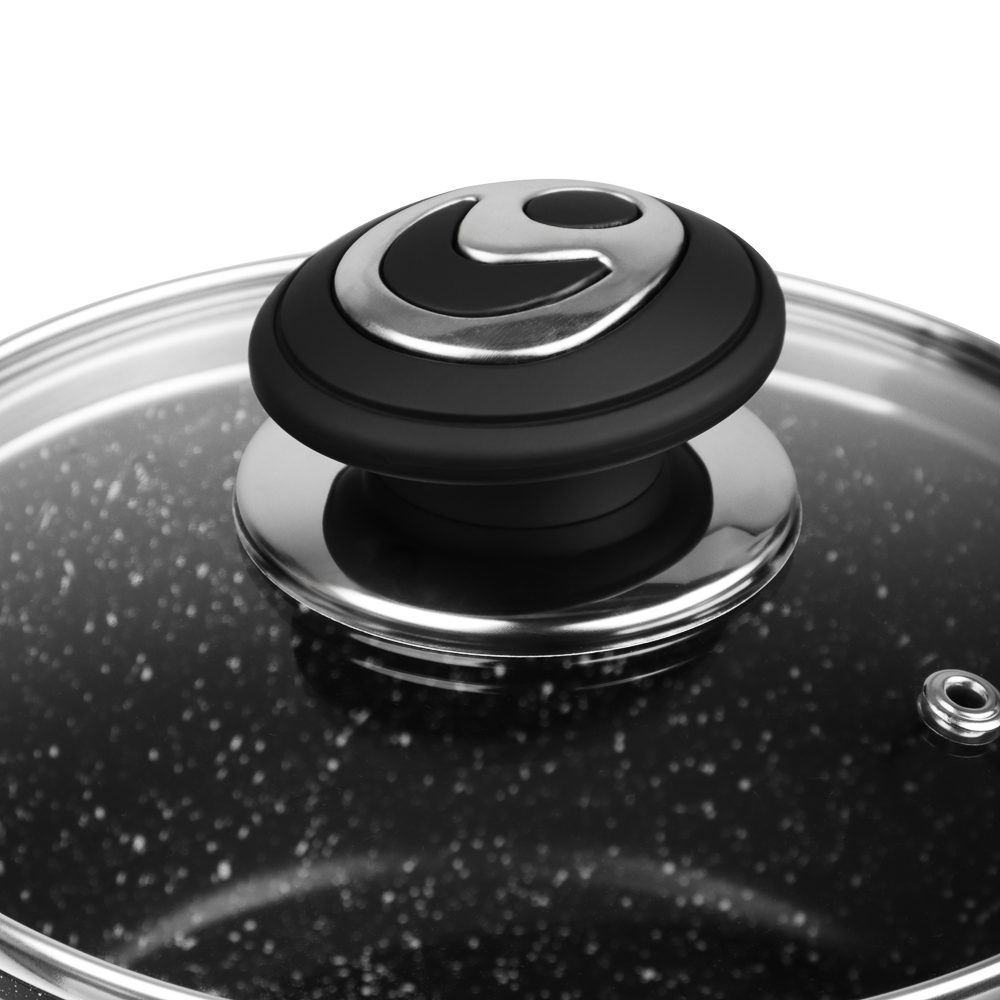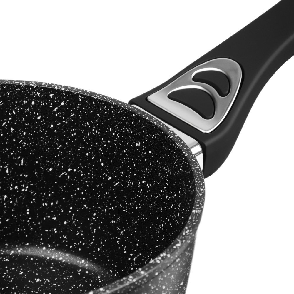 Набор посуды из литого алюминия из 10 предметов SATOSHI «Танто» включает все необходимое для приготовления любых блюд на домашней кухне. В состав набора входят 3 кастрюли объемом 2,3 л, 3,8 л, 5,7 л с прозрачными стеклянными крышками, ковш с крышкой объемом 1,3 л и 2 сковороды диаметром 24 и 28 см. Вся посуда имеет высокопрочное безопасное антипригарное покрытие без содержания PFOA, рассчитанное на интенсивное использование. Стильный дизайн в черном цвете с фактурой «под камень» украсит любую кухню и впишется в любой интерьерный стиль. Посуда подходит для приготовления диетических блюд без масла, продукты не прилипают и не пригорают. Ручки не нагреваются, прочные, эргономичные и долговечные. Набор предназначен для всех типов плит, включая и индукцию. Для сохранения целостности покрытия необходимо пользоваться деревянными, силиконовыми или пластиковыми лопаточками во время приготовления.