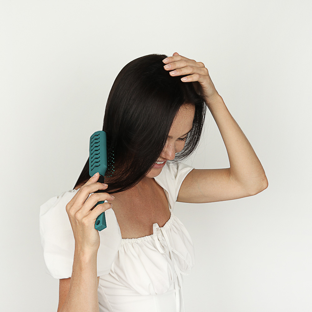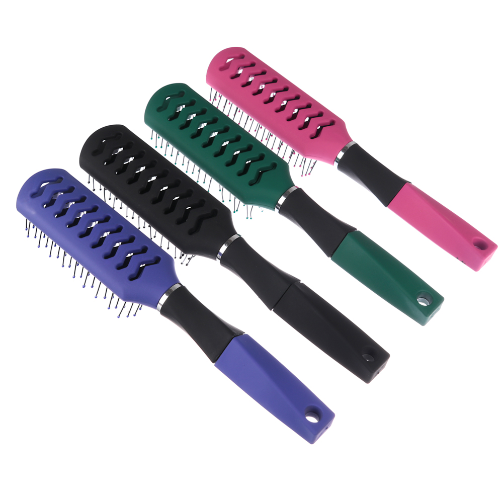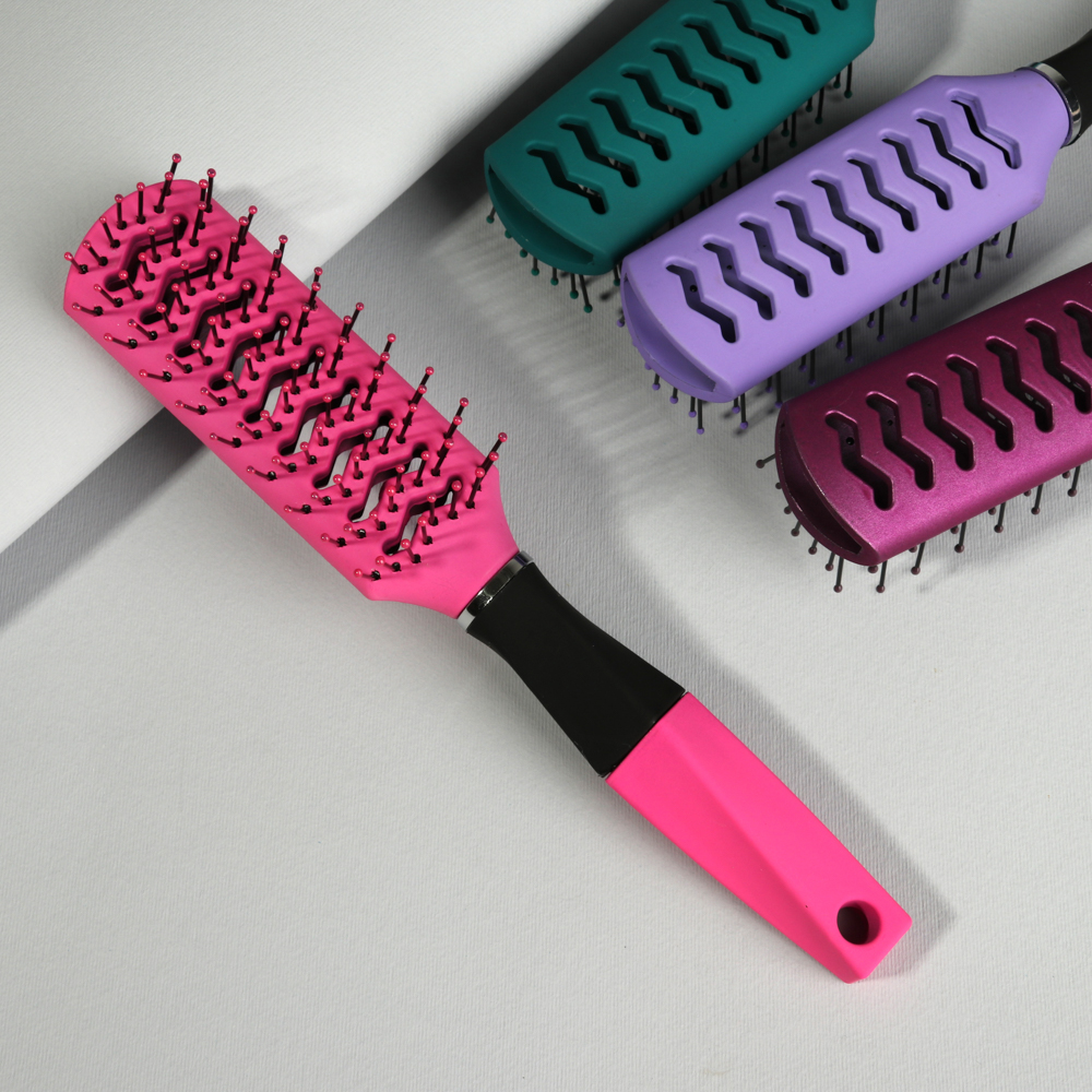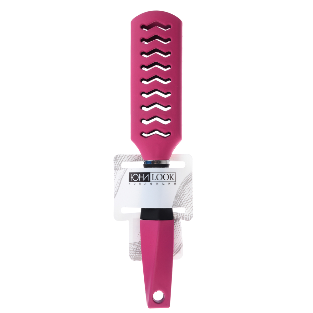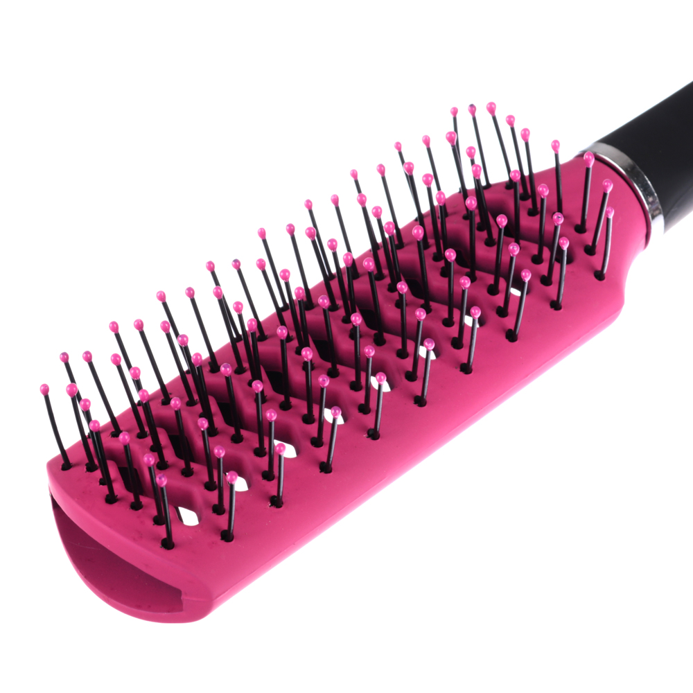 Расческа из пластика с металлическими зубчиками создана специально для укладки волос при помощи фена. Особая конструкция корпуса позволяет теплому воздуху легко проникать сквозь него, что существенно ускоряет и облегчает сушку и укладку волос. Материал расчески достаточно плотный, не боится перепада температур, а металлические зубчики с пластиковыми “капельками” на кончиках бережно расчесывают волосы и массируют кожу головы.