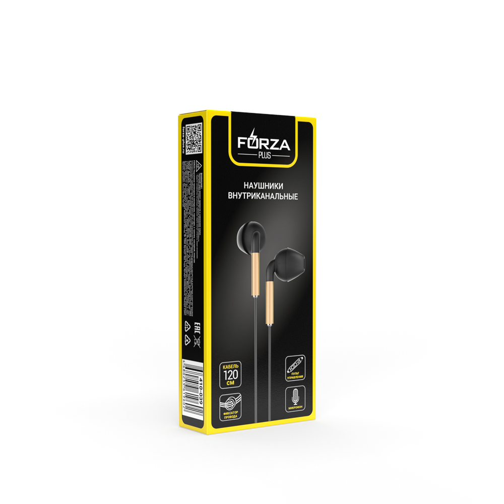 FORZA Наушники проводные вкладыши, гарнитура, с трапец. насадкой, пластик