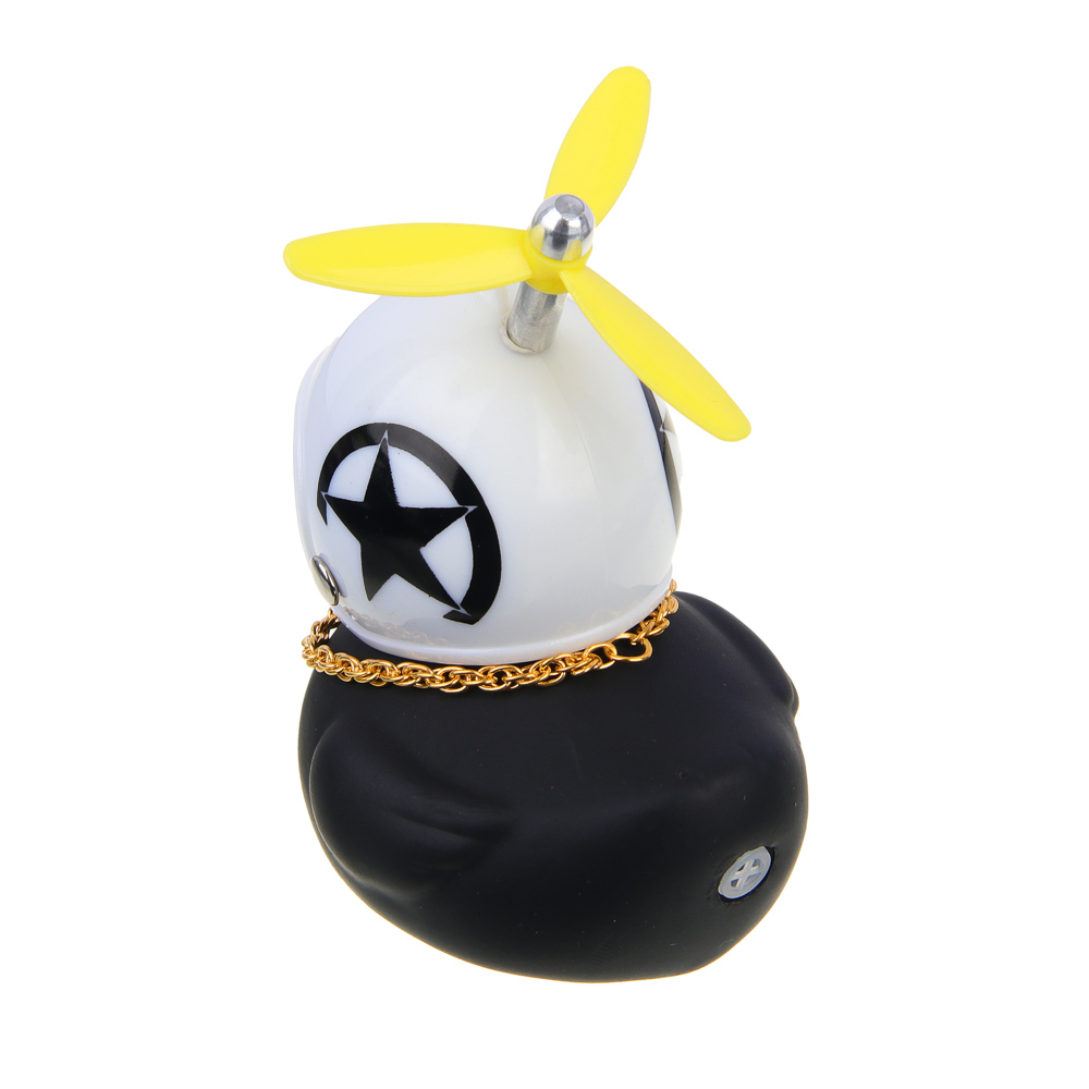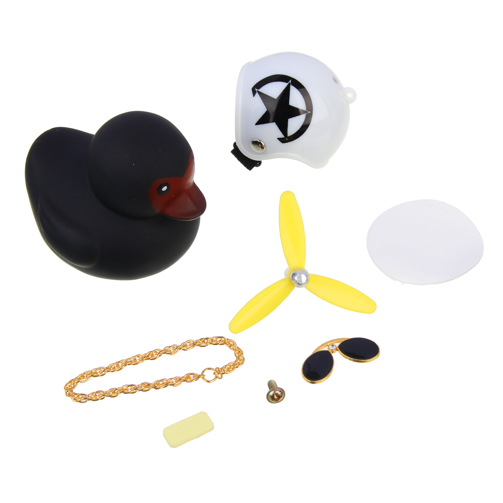 Утка с пропеллером ЕРМАК черного цвета – это оригинальный аксессуар, а также игрушка-антистресс, которая станет украшением автомобильного салона. Игрушка сборная. Все детали: пропеллер, шлем, а также набор аксессуаров в виде очков и цепочки можно снять или надеть на фигурку по своему желанию. Комплект включает самоклеящуюся основу для фиксации на панели. Идеальный сувенирный подарок для автовладельца.
