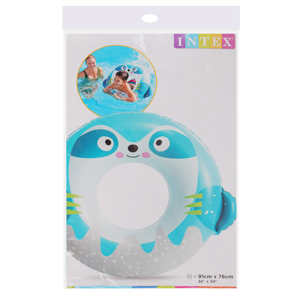 Круг для плавания INTEX в виде круглого пончика с мордочкой зверушки. Диаметр 76 см, подходит для детей от 8 лет. На выбор 3 дизайна круга. Чтобы купить, добавьте в корзину и оформите заказ.