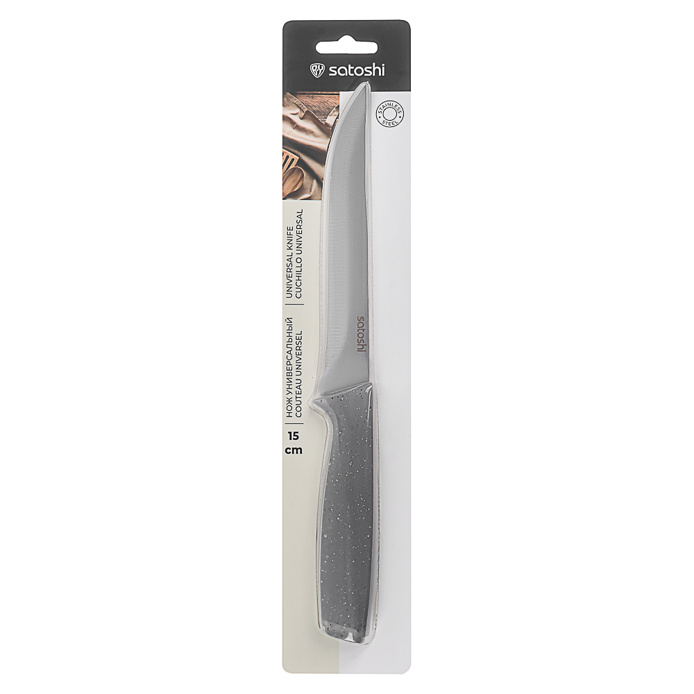 Нож кухонный универсальный SATOSHI «Ивуа» с длиной лезвия 15 см удобен для нарезки ингредиентов для приготовления салатов, закусок и основных блюд. Острая заточка и небольшая толщина клинка позволяет производить качественную нарезку любой толщины: от крупных ломтиков до тончайших слайсов. Высококачественная нержавеющая сталь долго держит заточку, не подвержена коррозии и деформации, обладает высокими гигиеническими свойствами. Безопасная рукоять с выемкой под пальцы исключает риск соскальзывания пальцев на лезвие.