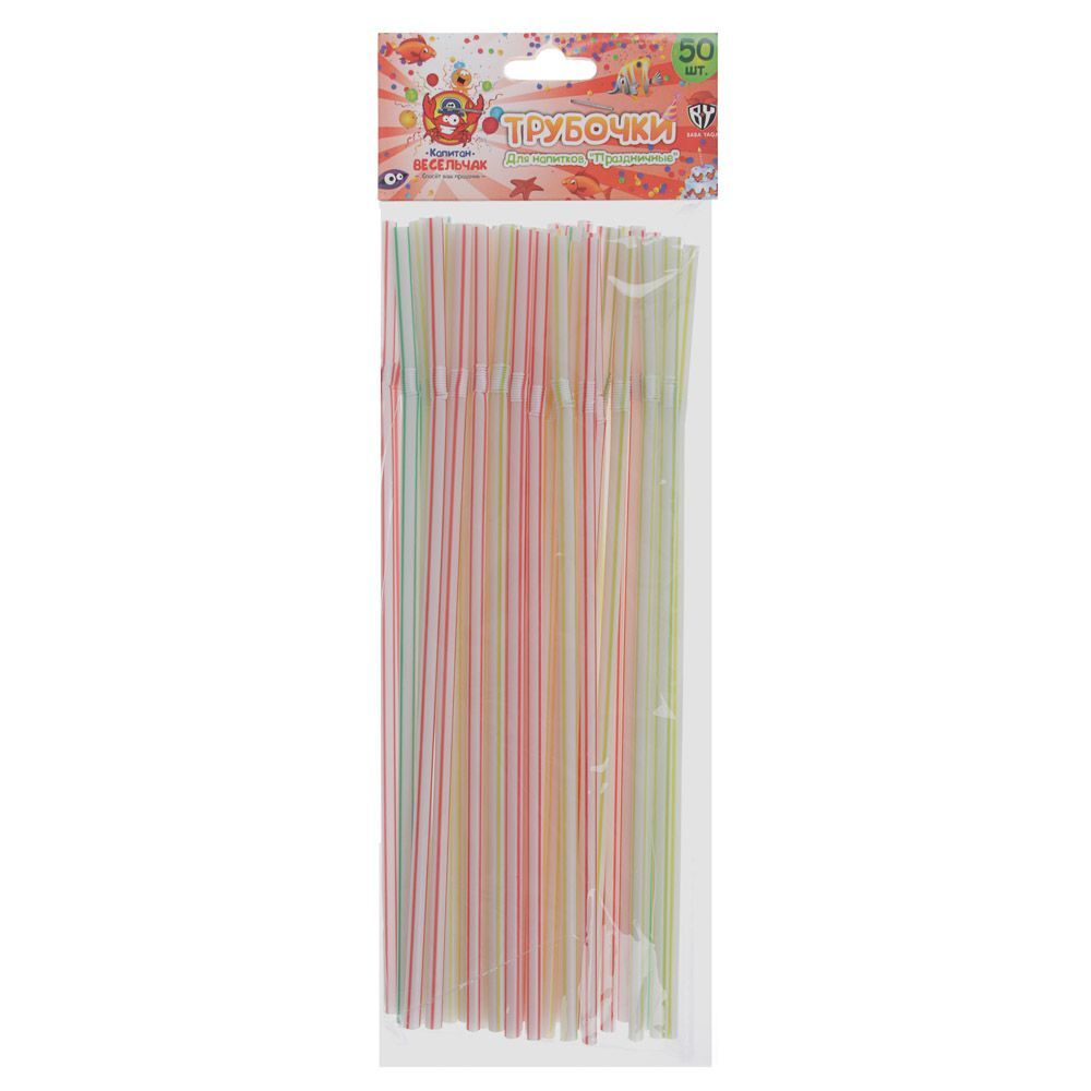 Капитан Весельчак Трубочки для напитков 50шт, 210x5мм, "Праздничные", цветные