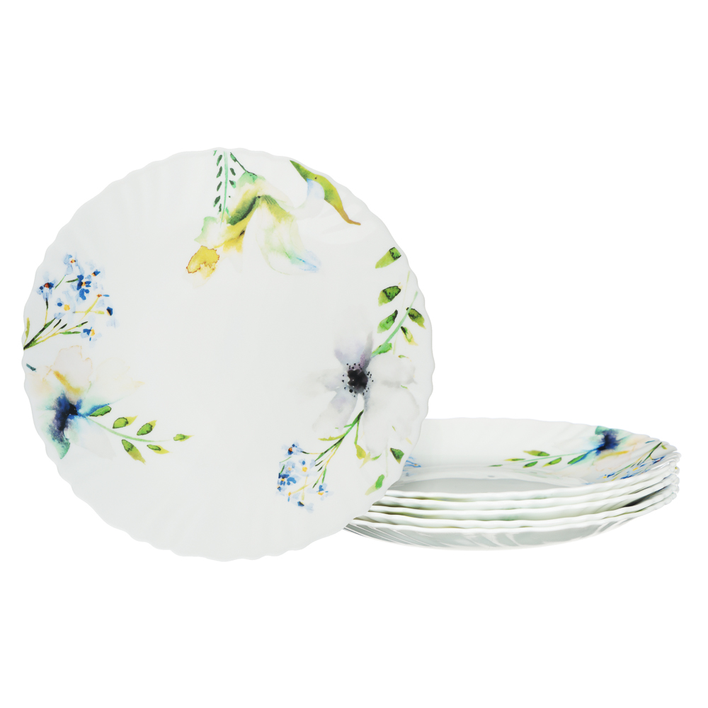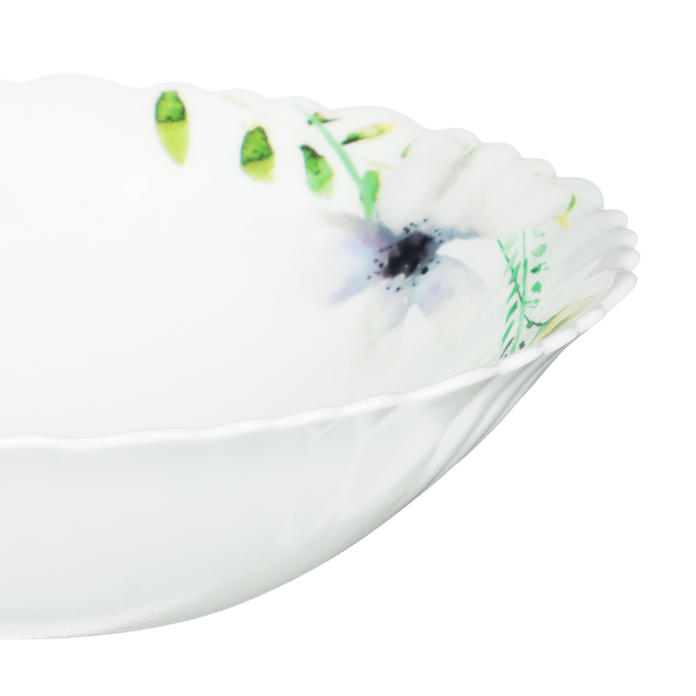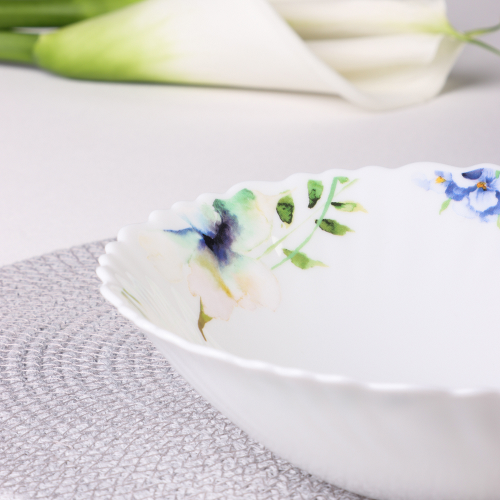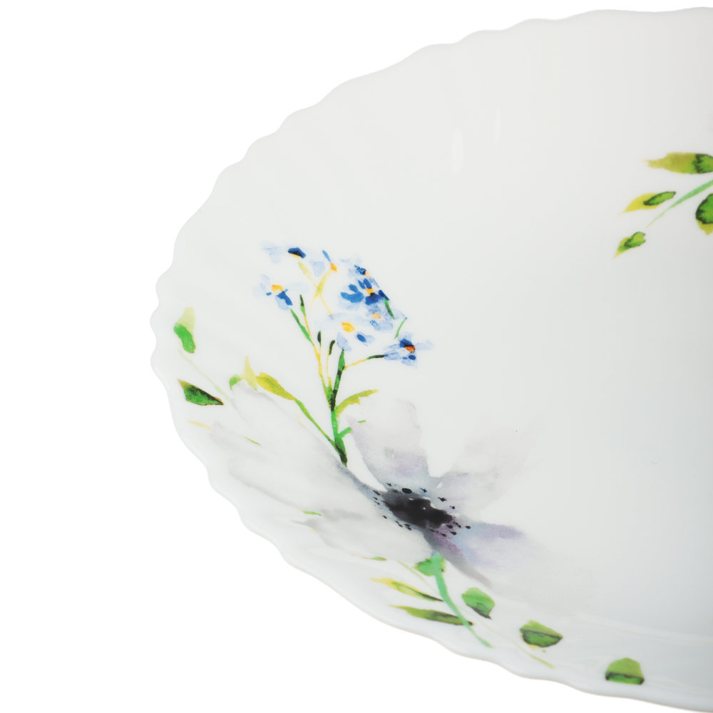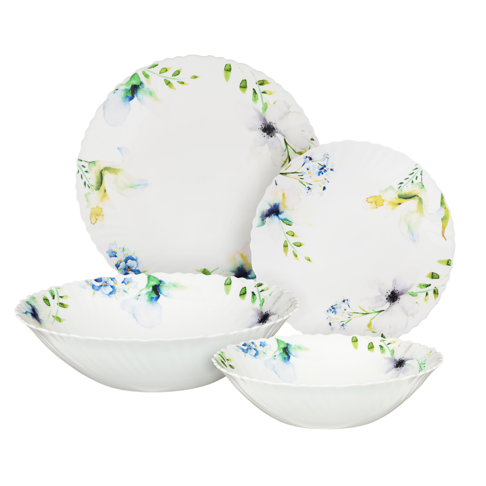 Набор MILLIMI Шабер из 19 предметов — это истинное воплощение элегантности и изысканности. Белоснежная основа из опалового стекла украшена цветочным узором в синей палитре, создающим атмосферу свежести и гармонии. Благодаря прочности и термостойкости опалового стекла, посуда выдержит ежедневное использование и порадует вас долговечностью. Комплектация набора: 6 обеденных тарелок (диаметр 24 см) — идеальны для подачи основных блюд и закусок; 6 десертных тарелок (диаметр 19 см) — подойдут для сервировки десертов и небольших порций; 6 глубоких тарелок (диаметр 19 см) — прекрасно удерживают тепло супов, паст и других горячих блюд; 1 крупный салатник (диаметр 24 см) — станет эффектным акцентом для подачи салатов, фруктов или закусок. Уникальный цветочный узор на белом фоне, словно созданный художником, добавляет набору утонченности и делает его стильным украшением любого стола. Набор MILLIMI Шабер станет не только украшением семейных ужинов и обедов, но и великолепным подарком для б