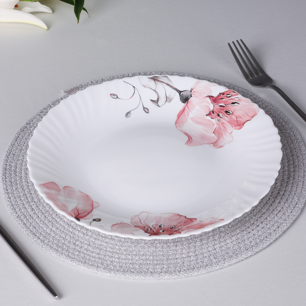 Подстановочная тарелка MILLIMI Роселла — это изысканное дополнение к вашей сервировке. Изготовленная из опалового стекла, она сочетает в себе прочность и лёгкость, обеспечивая долговечность и удобство в использовании. Диаметр 24 см идеально подходит для подачи основных блюд, создавая элегантную композицию на столе. Нежные розовые цветы на белом фоне добавляют тарелке романтичный и утонченный вид, который прекрасно дополняет любую обстановку. Эта тарелка станет настоящим украшением вашего стола, придавая каждому приему пищи особую атмосферу.