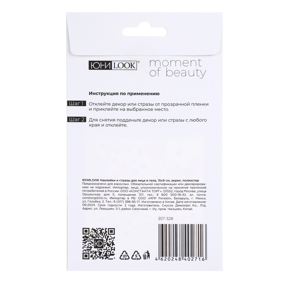 ЮНИLOOK Наклейки и стразы для лица и тела, 15х9 см, акрил, полиэстер, 3 дизайна,  ВЗ24-44