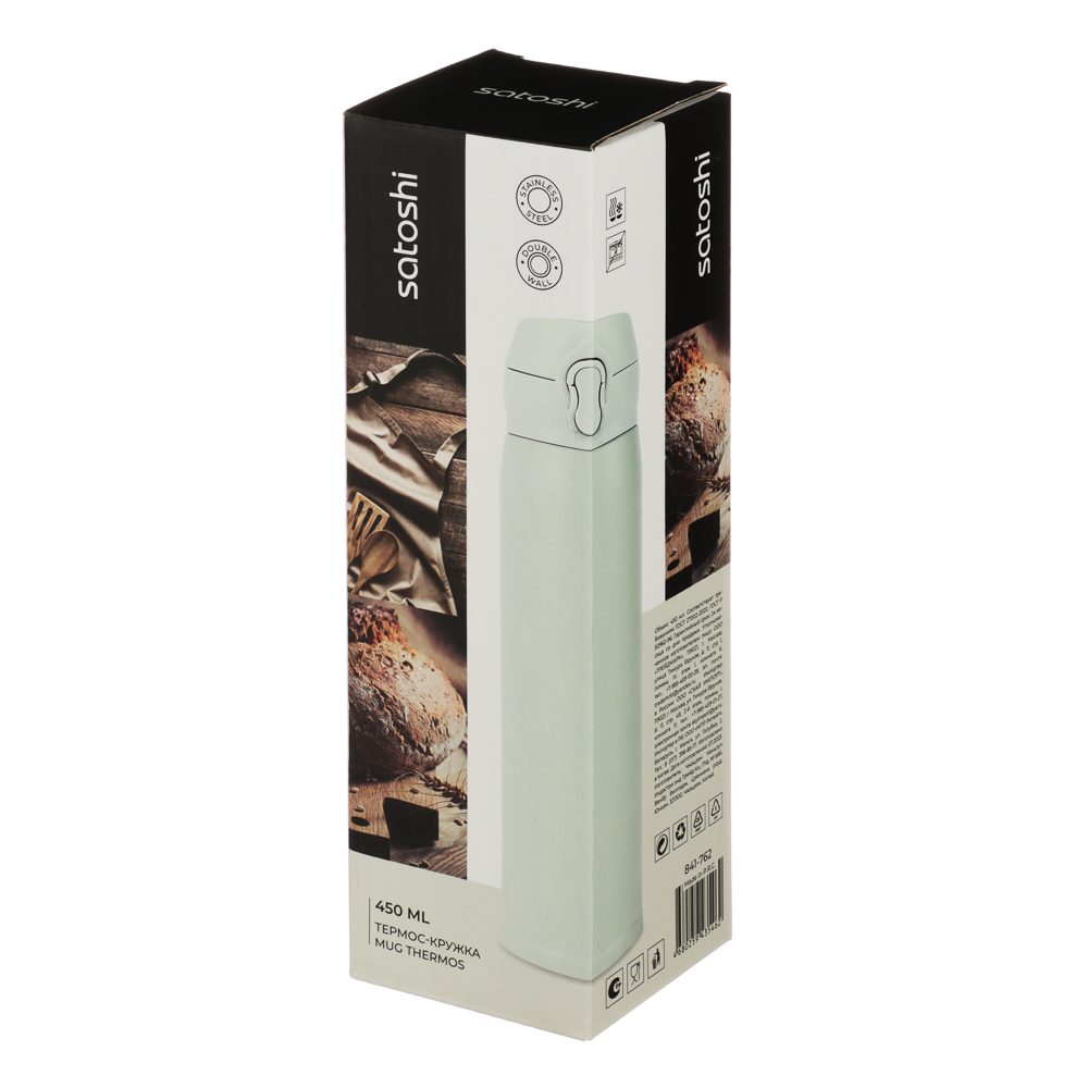 Кружка-термос SATOSHI объемом 450 мл с двойными стенками корпуса сохраняет напитки теплыми дольше обычного. Изделие выполнено из нержавеющей стали, обладающей гигиеничностью, отличными теплоизоляционными свойствами и повышенной устойчивостью к механическим повреждениям. Надежная крышка исключает проливание жидкости. Такой аксессуар удобно использовать на отдыхе, работе и в автомобиле.