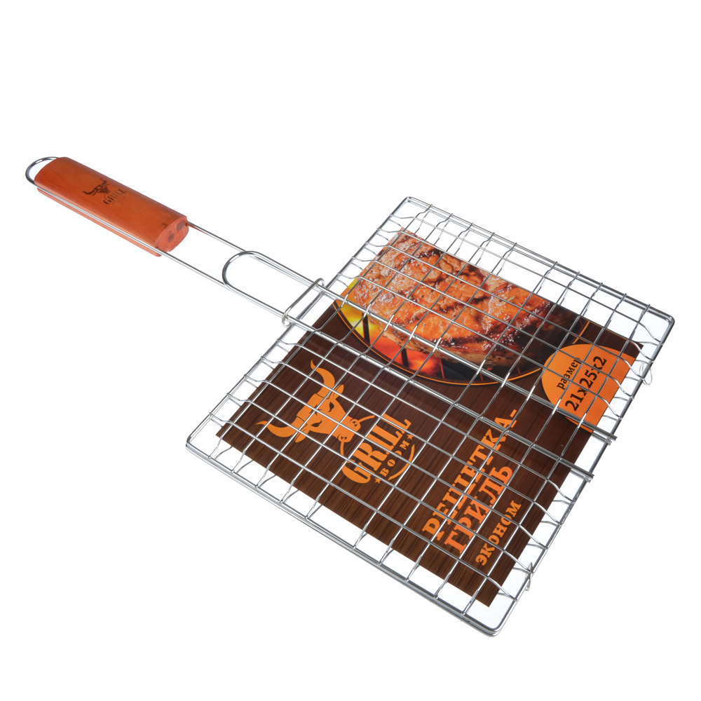 Хромированная решетка для гриля на мангал предназначена для запекания мяса или рыбы. Изготовлена из жаропрочного материала, не деформируется от воздействия высоких температур. Ручка с деревянной рукояткой, которая позволяет защитить руки от ожогов и обеспечивает удобный хват при переворачивания продуктов. Чтобы купить решетку для гриля, добавьте ее в корзину.