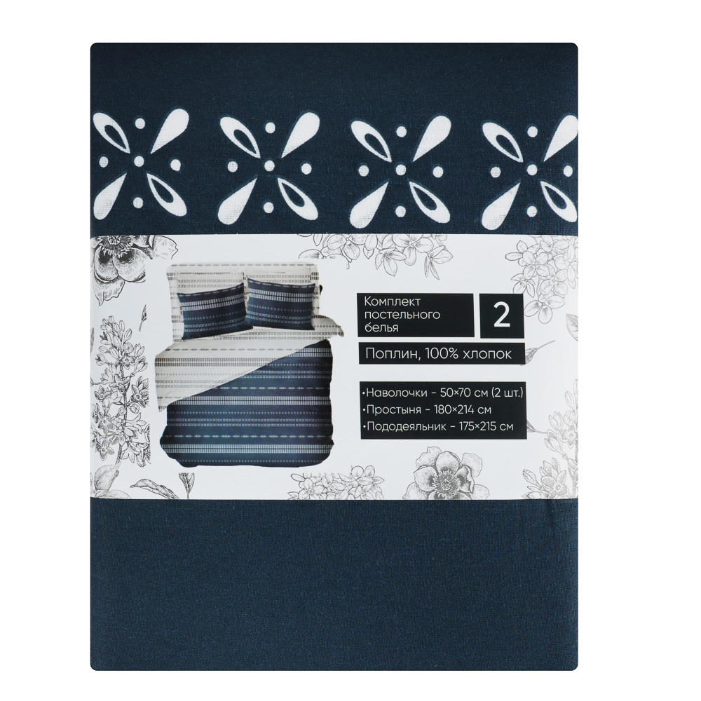 Комплект постельного белья PROVANCE Нэви — это больше, чем просто набор спальных принадлежностей. Это стиль, комфорт и элегантность в каждой детали. Изысканный синий цвет и лаконичный рисунок на ткани станут стильным акцентом в интерьере вашей спальни. Комплект изготовлен из поплина — мягкой и приятной на ощупь ткани. Благодаря своей прочности и износостойкости, поплин долго сохраняет первоначальный вид и цвет. Ткань изготовлена из 100%-го хлопка, который известен своей гипоаллергенностью и способностью пропускать воздух. Преимущество постельного белья из хлопка заключается в его способности создавать ощущение прохлады летом и согревать зимой. В комплект входят четыре предмета: две наволочки размером 50х70 см, простыня размером 180х214 см и пододеяльник размером 175х215 см. Стандартный размер подойдёт для большинства современных кроватей.