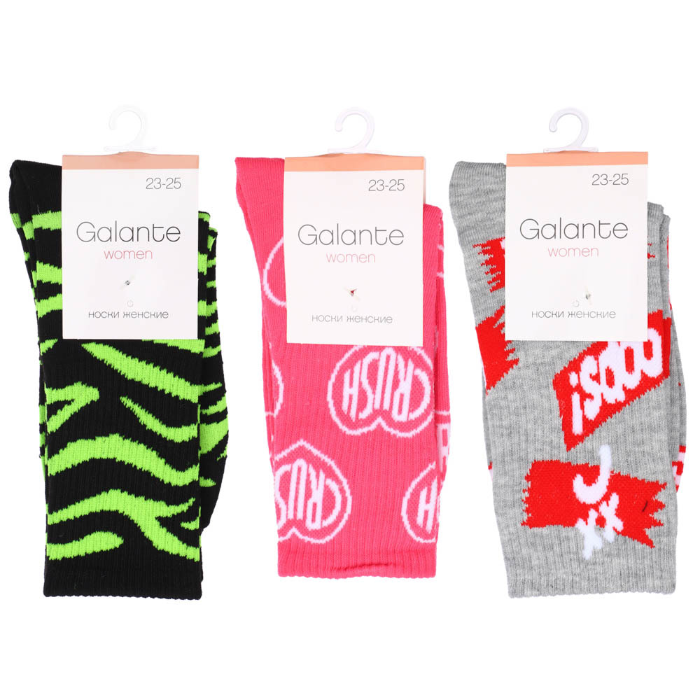 Женские носки Galante предназначены для повседневной носки в осенне-весенний период, а также подойдут для занятий спортом. Изготовлены из натурального хлопка с добавлением полиэстера. Отличаются мягкостью и эластичностью в сочетании с высокой износостойкостью. Прекрасно сохраняют цвет после множества стирок. Размер – 23-25.
