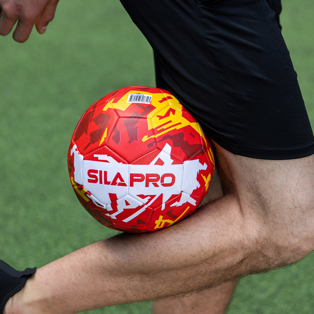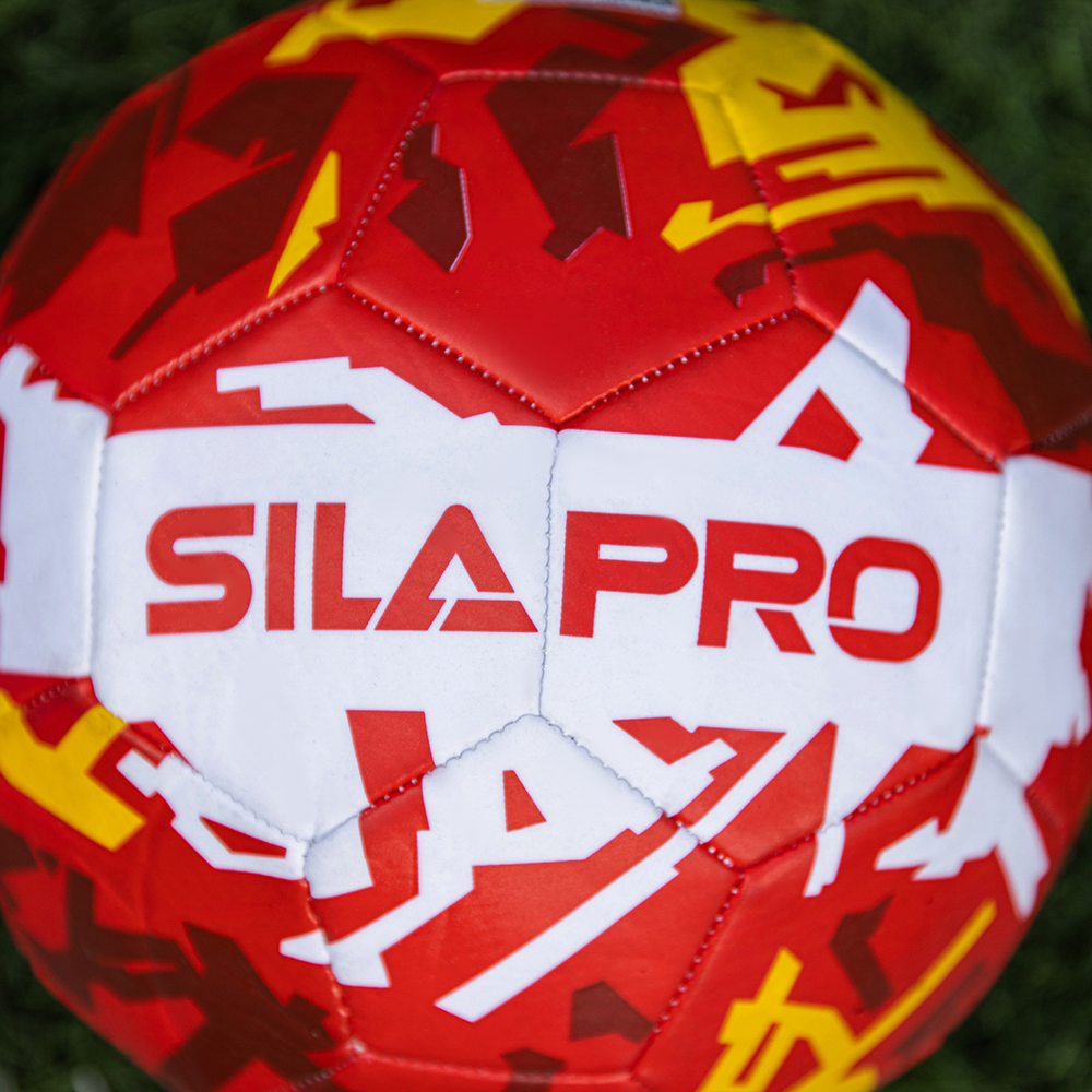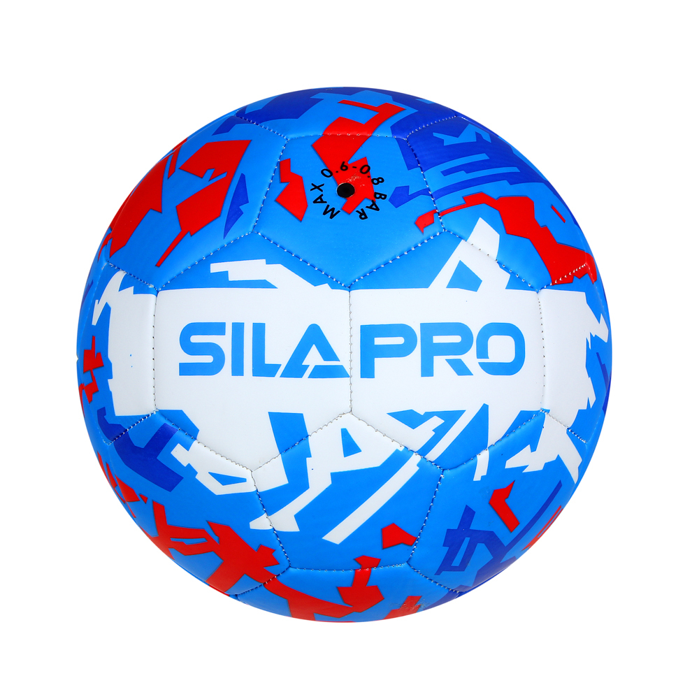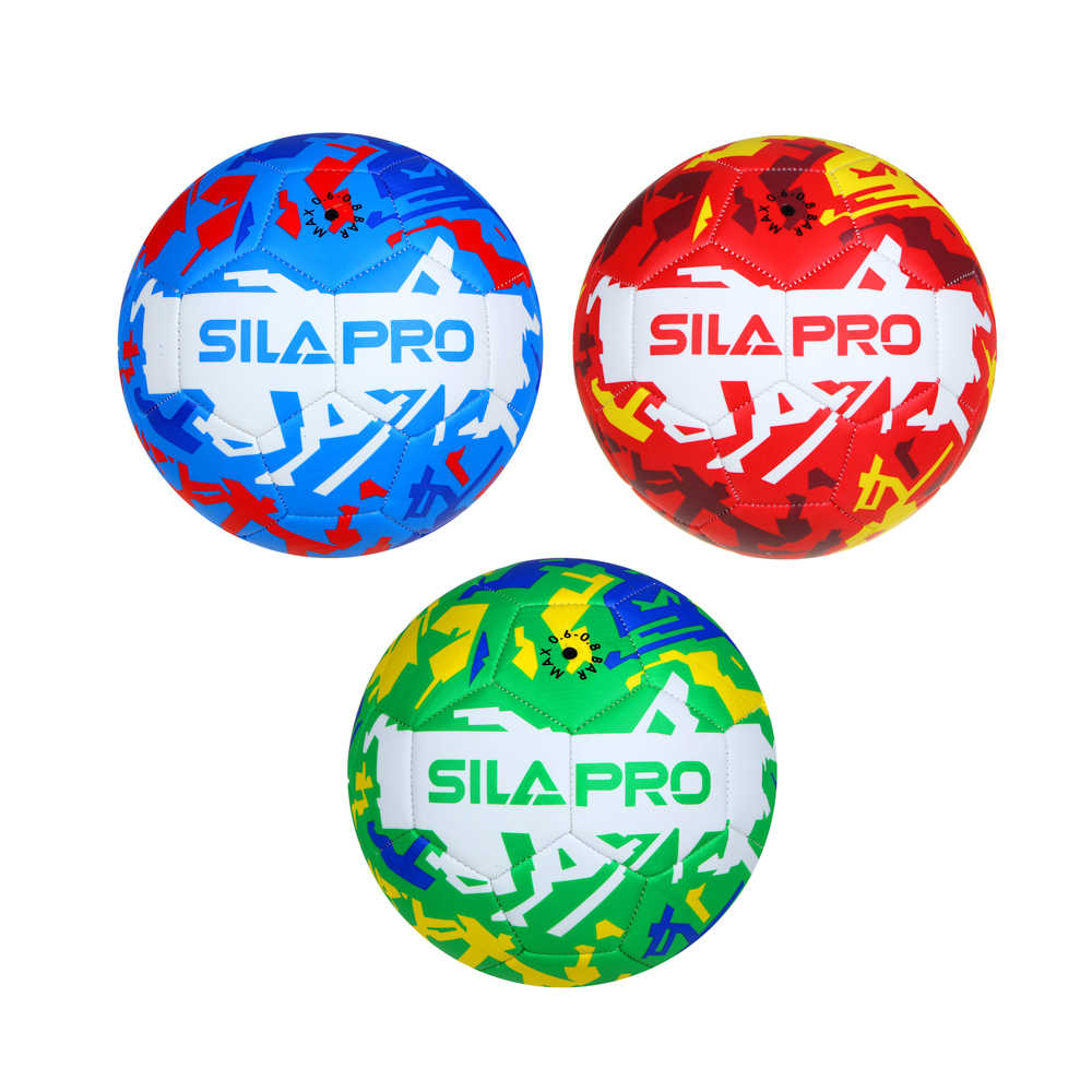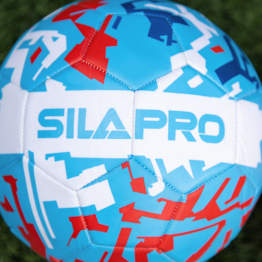 Футбольный мяч SILAPRO 22 см. с ярким принтом предназначен для игры в футбол на различных типах покрытий: натуральном и искусственном газоне, на напольном покрытии спортзала и на прорезиненной поверхности. Мощная машинная сшивка является гарантией прочности и долговечности изделия. Мяч имеет трехслойную подкладку, что способствует его износостойкости даже при интенсивной эксплуатации.