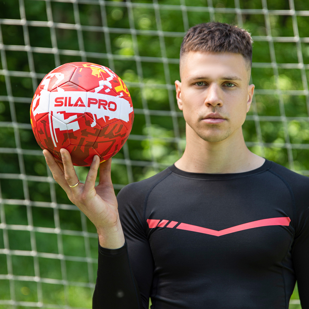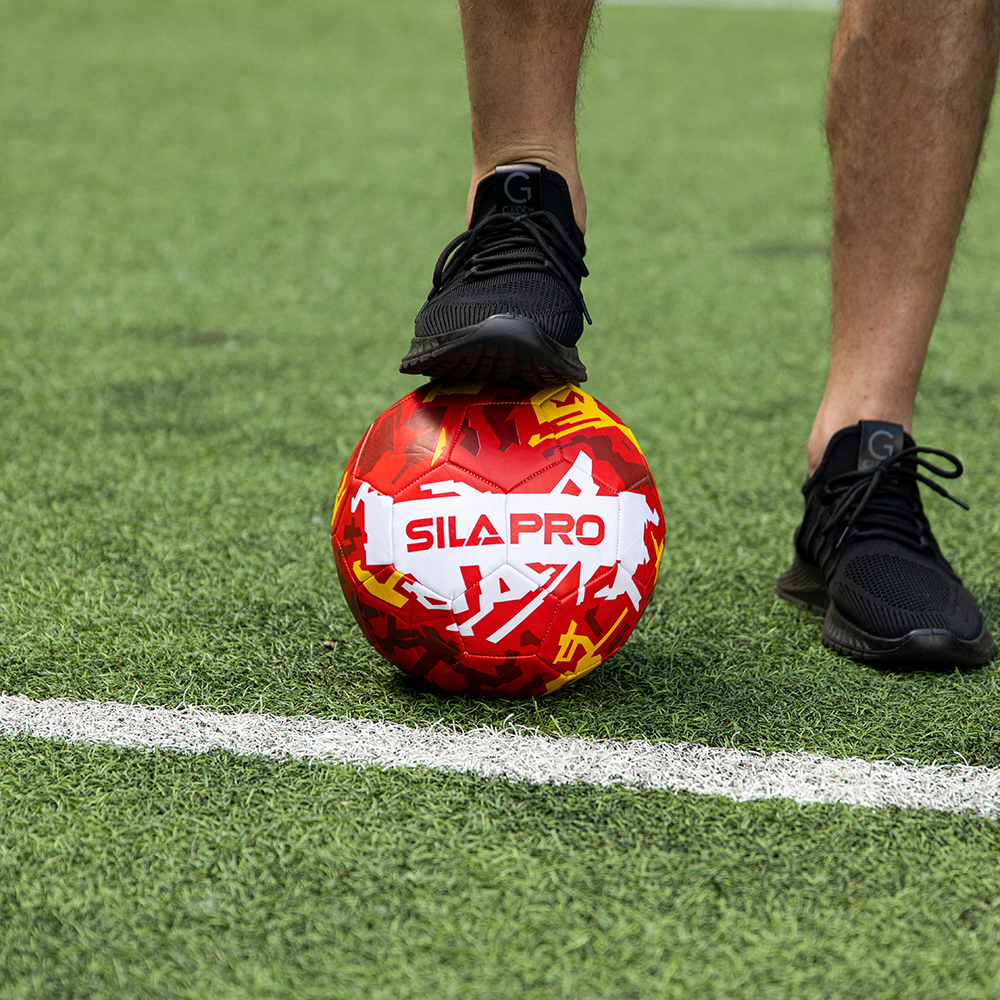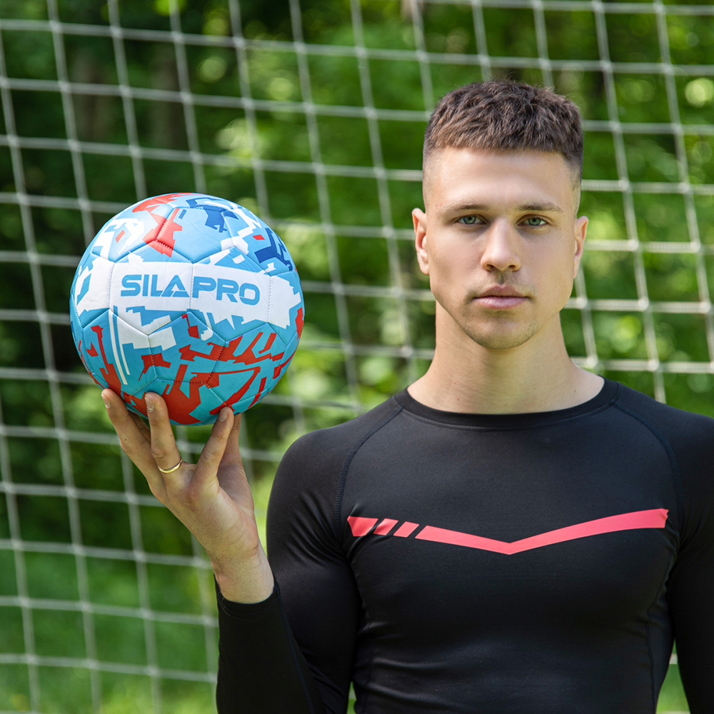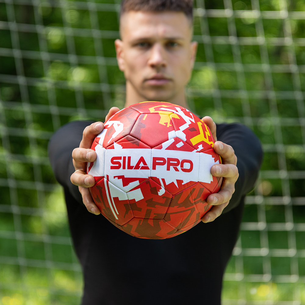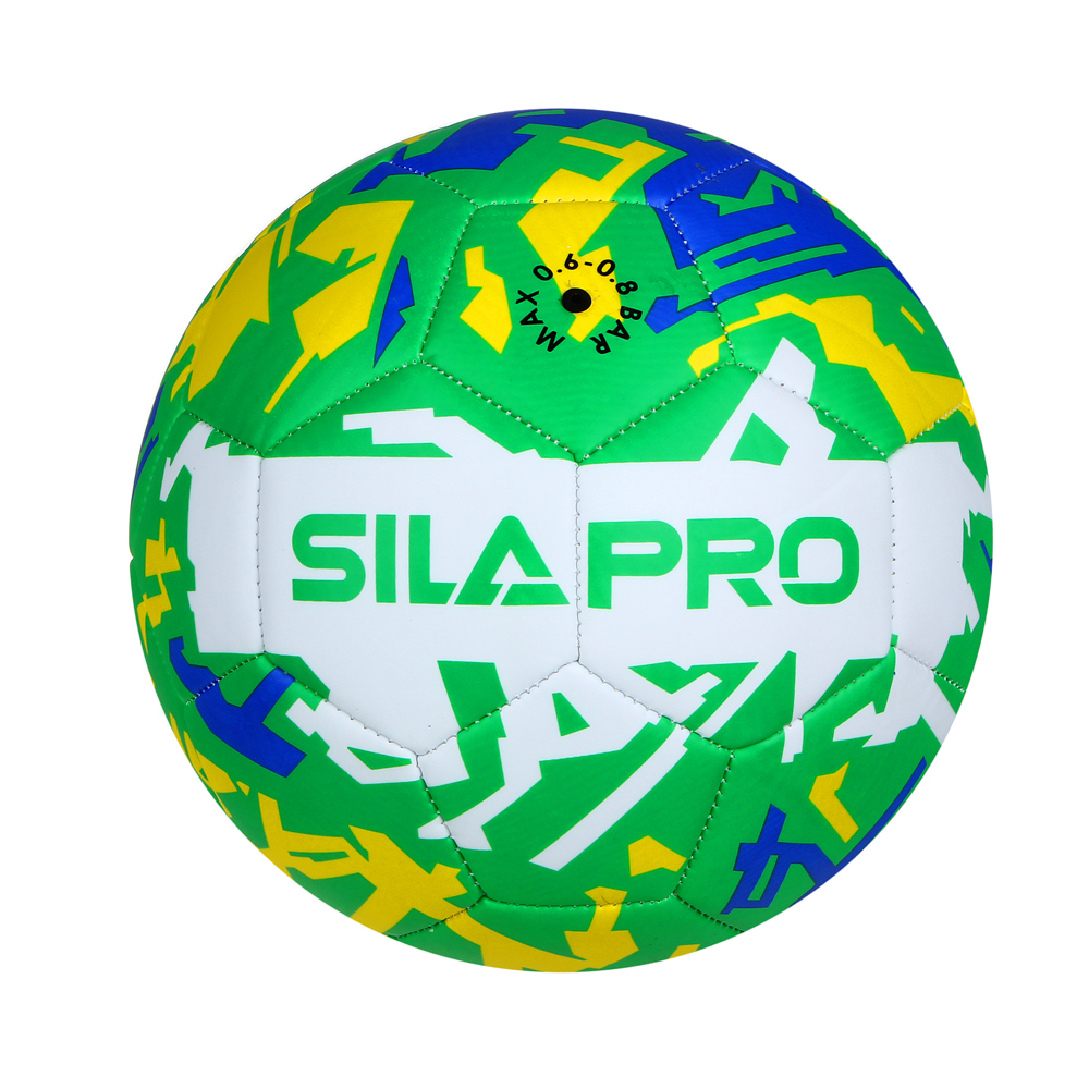 Футбольный мяч SILAPRO 22 см. с ярким принтом предназначен для игры в футбол на различных типах покрытий: натуральном и искусственном газоне, на напольном покрытии спортзала и на прорезиненной поверхности. Мощная машинная сшивка является гарантией прочности и долговечности изделия. Мяч имеет трехслойную подкладку, что способствует его износостойкости даже при интенсивной эксплуатации.