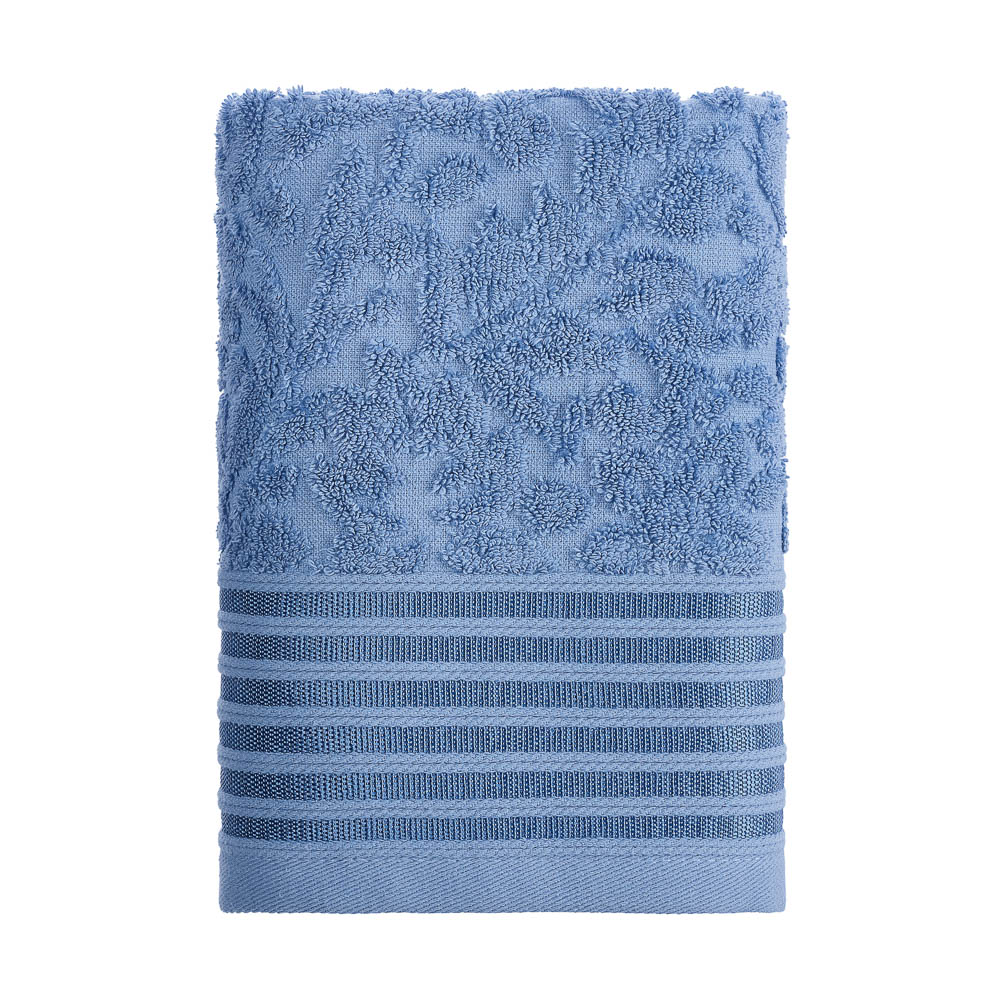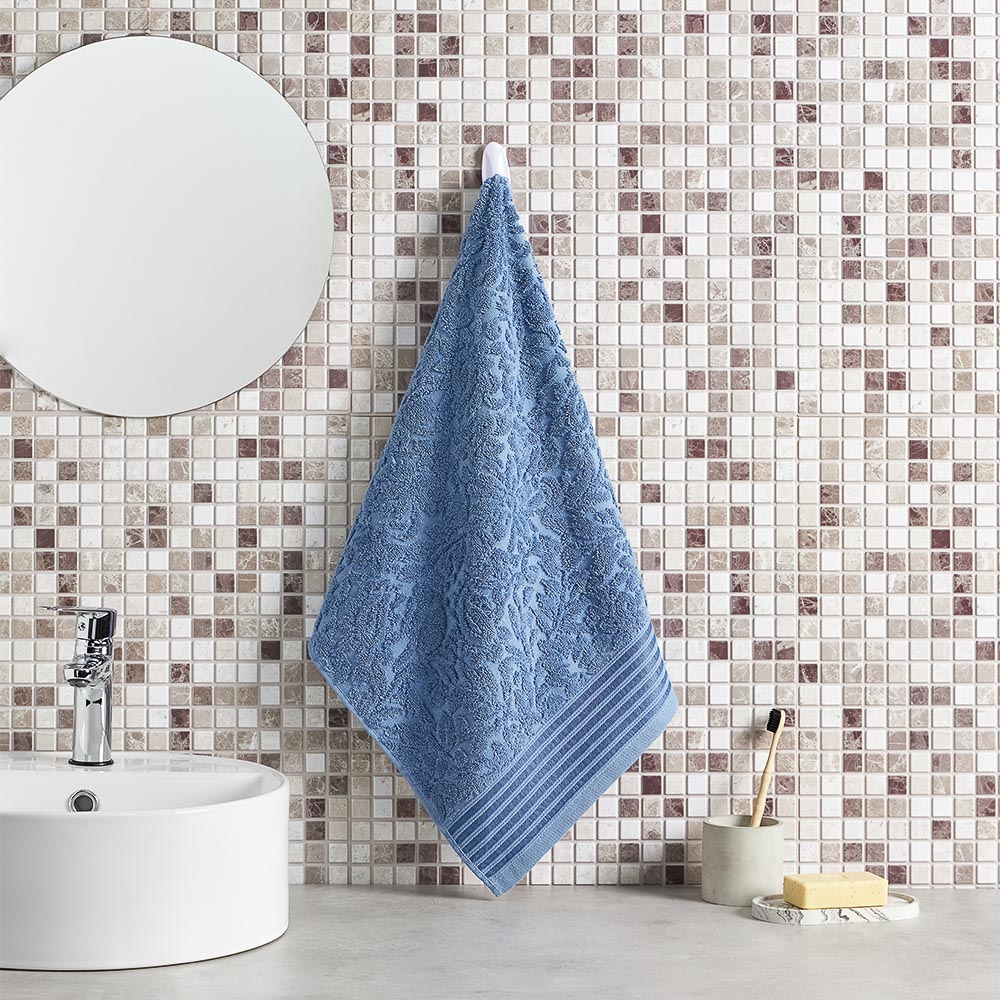 Махровое полотенце для лица и тела PROVANCE Нэви размером 50х90 см — идеальный выбор для повседневного использования. Высококачественный практичный текстиль из 100% хлопка плотностью 500 г/м2 отлично впитывает влагу, не линяет, не дает усадку и сохраняет первоначальную форму даже после частых стирок. Благородный синий цвет с ненавязчивым орнаментом эстетично смотрится в интерьере ванной комнаты.